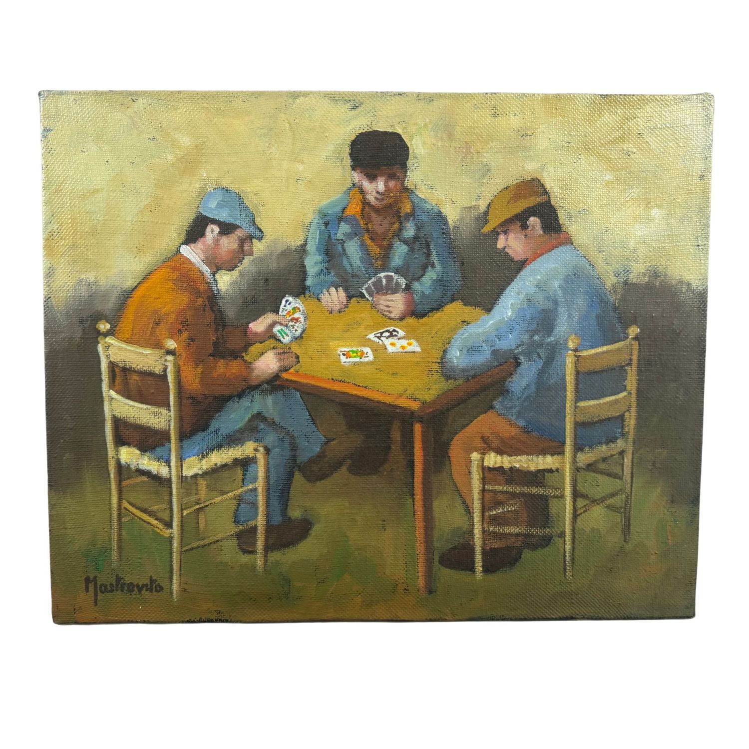 Dipinto olio su tela, periodo XX secolo scuola Italiana, raffigurante Gioco di carte.