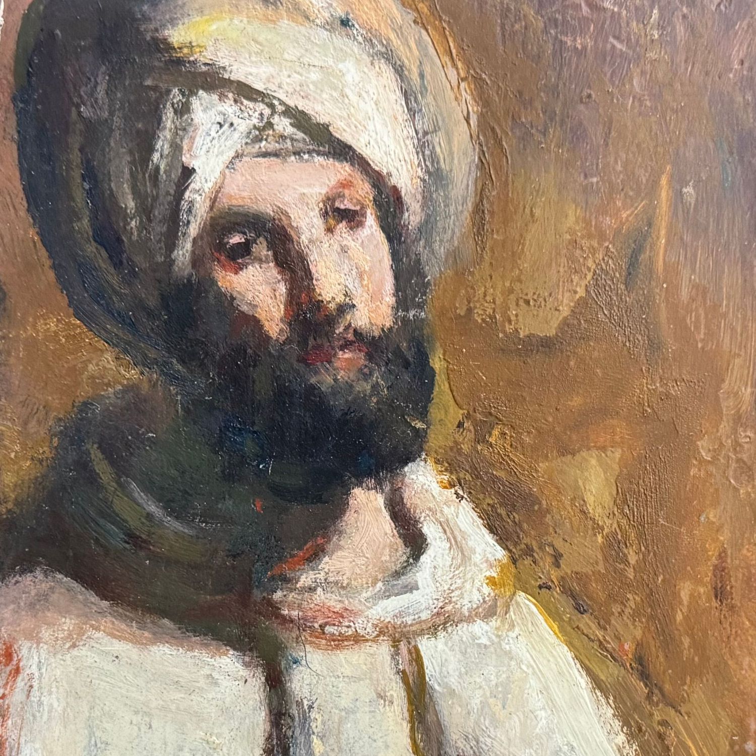 Piccolo dipinto olio su tavola, periodo XX secolo scuola Italiana, raffigurante Uomo con turbante.