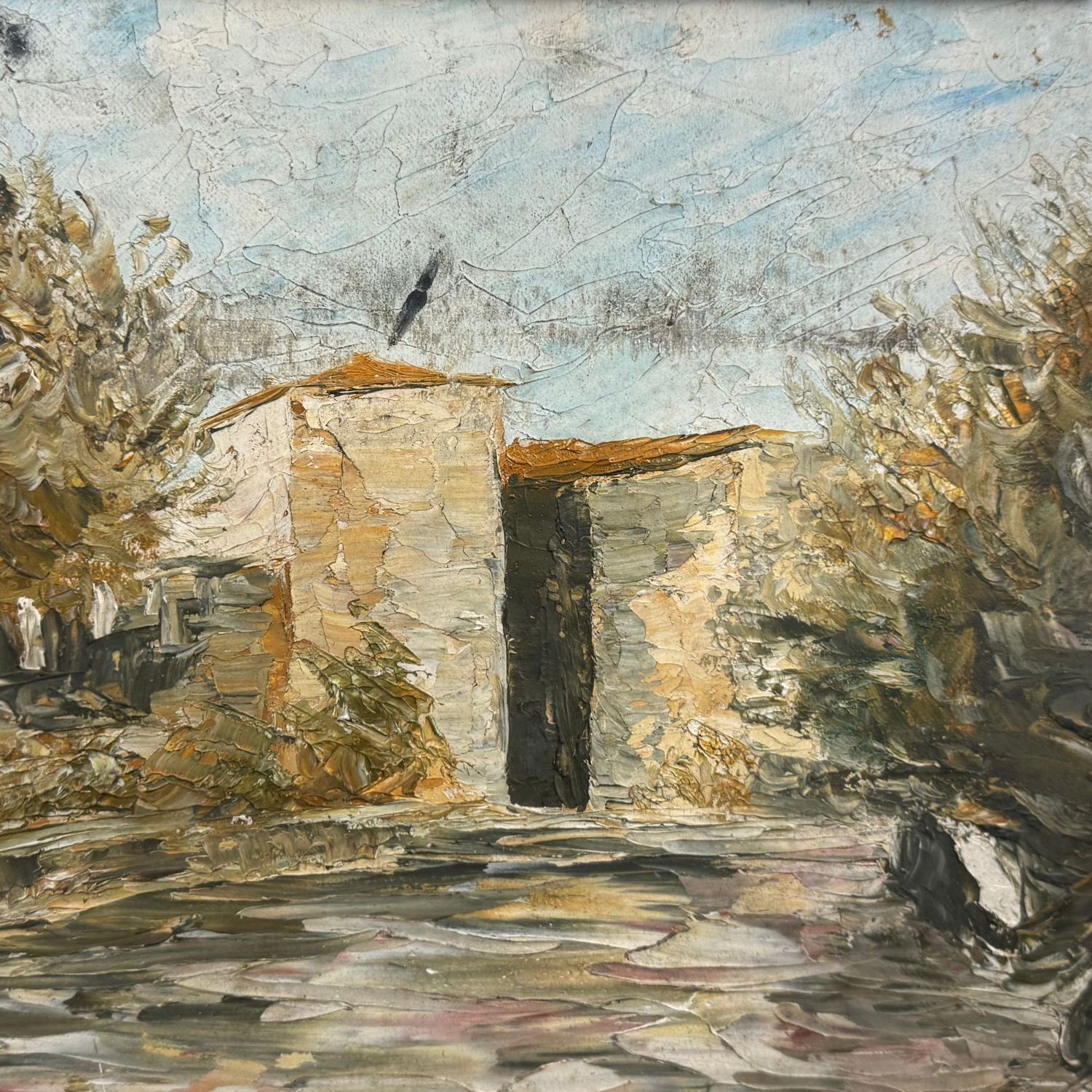 Dipinto olio su pannello, periodo XX secolo scuola Italiana, raffigurante Paesaggio di campagna.