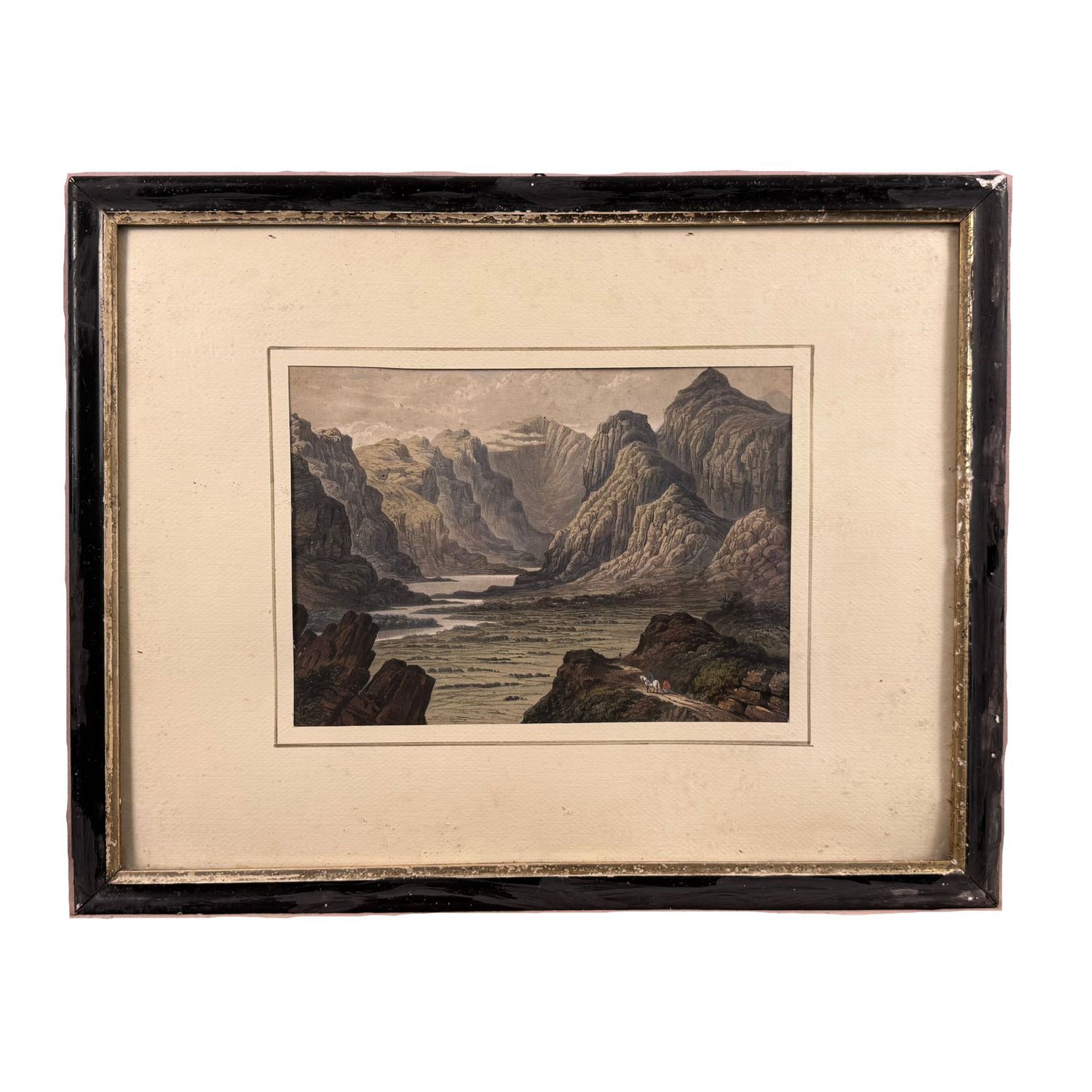 Tecnica mista su carta, periodo XIX secolo scuola Europea, raffigurante Paesaggio con rocce (luogo imprecisato)