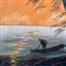 Dipinto tecnica mista su carta, scuola Orientale raffigurante Pescatore.