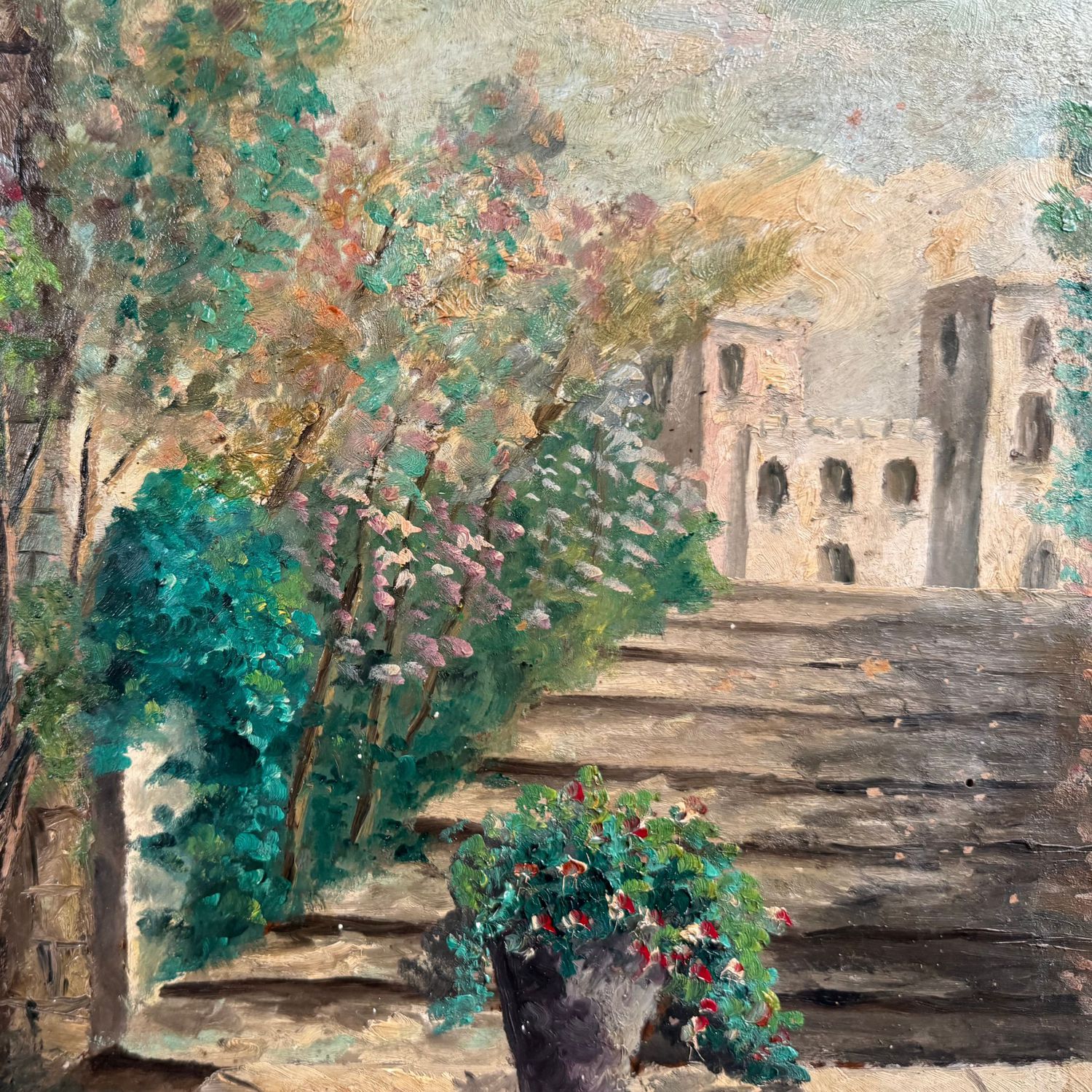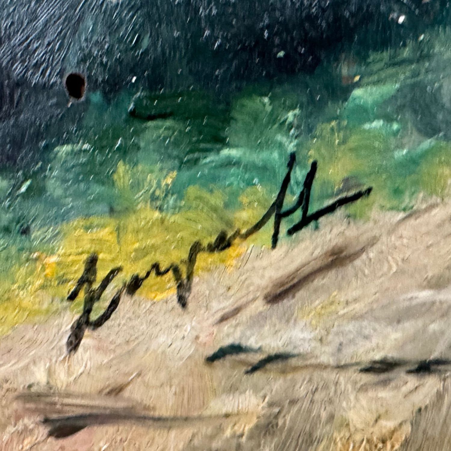 Dipinto olio su pannello, periodo XX secolo scuola Italiana , raffigurante Veduta del golfo.