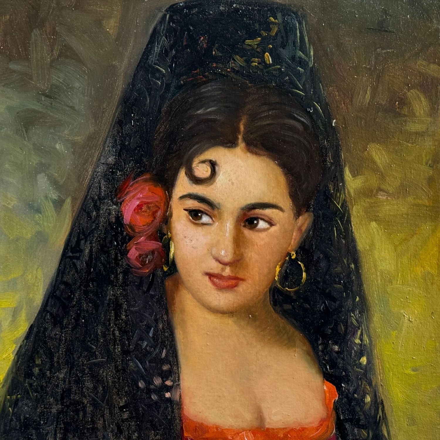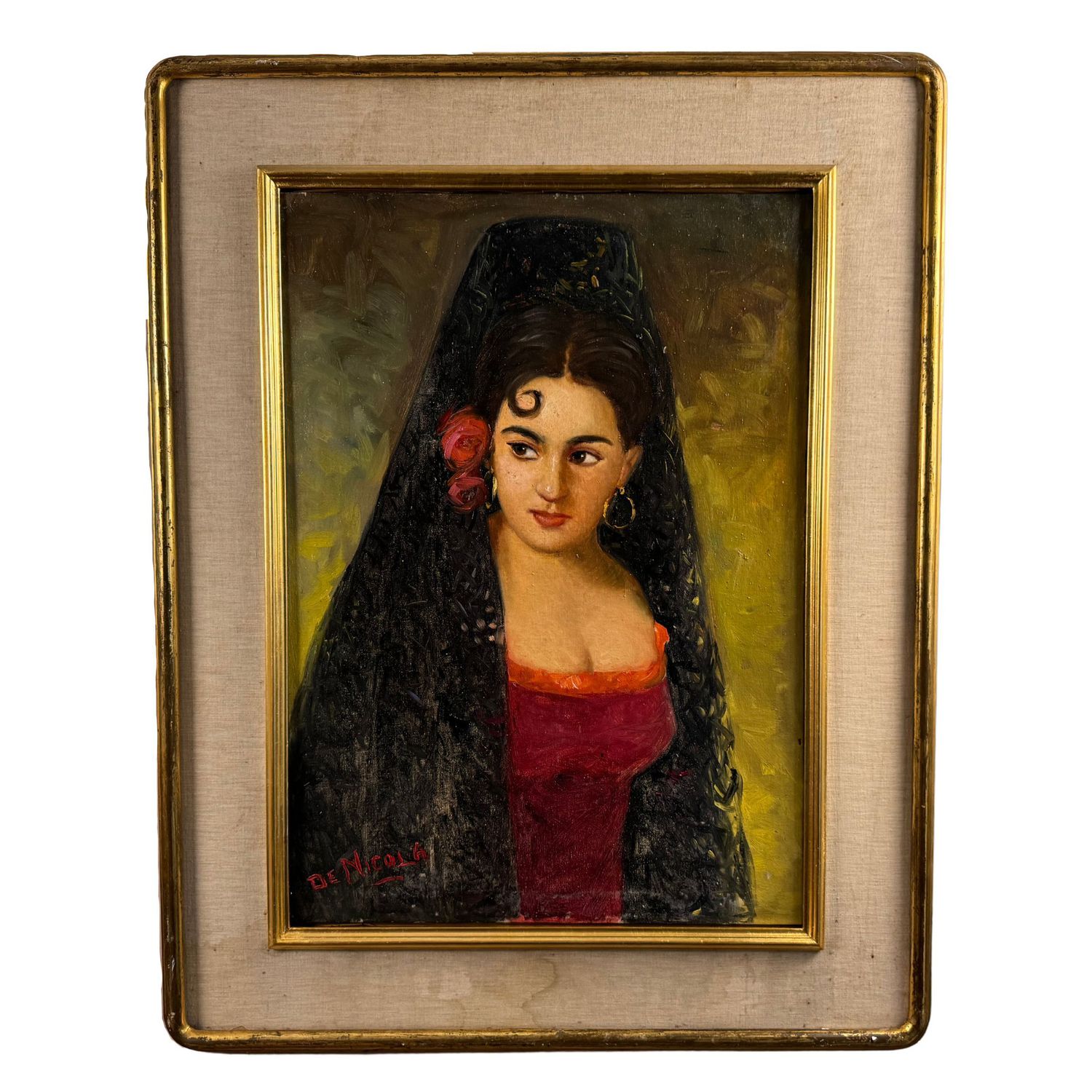 Dipinto olio su tela, periodo XX secolo scuola Italiana, raffigurante Ritratto di donna con velo.