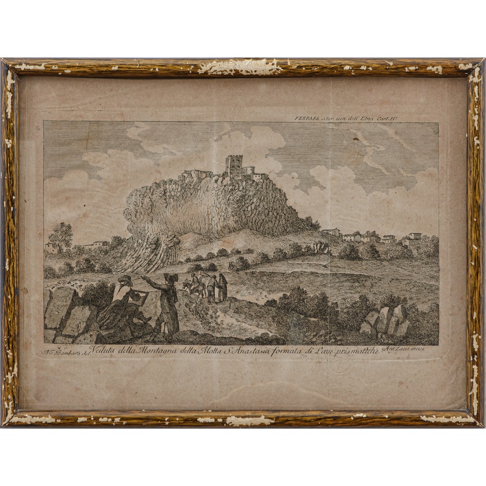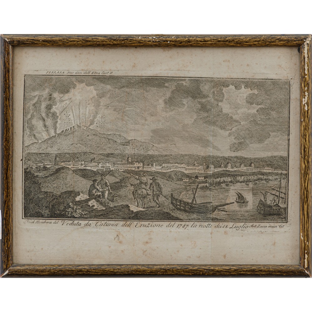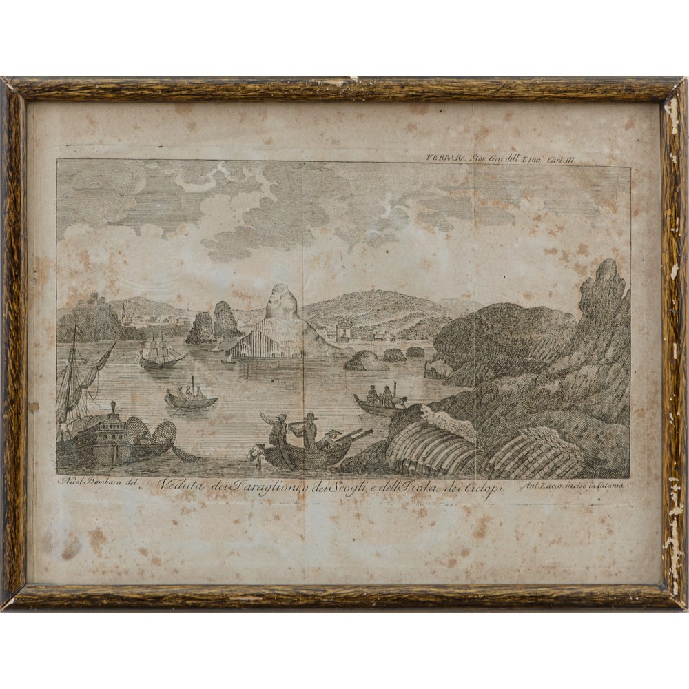 Quattro stampe raffiguranti "Vedute del territorio catanese" entro cornici in legno