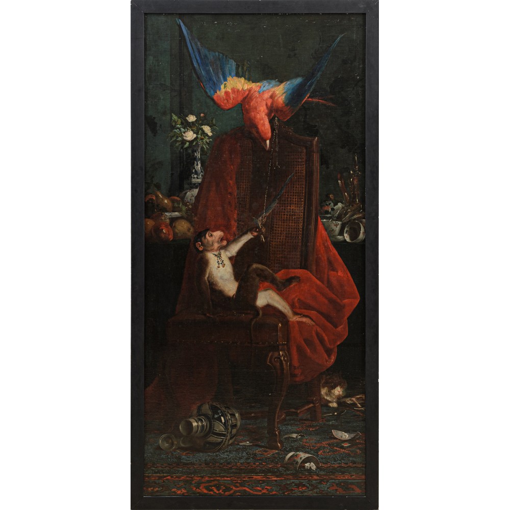 Natura morta con pappagallo e scimmia