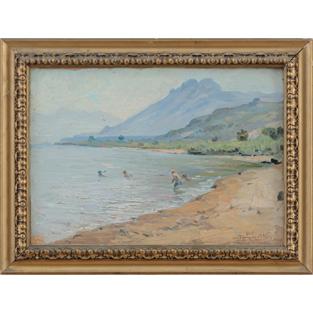 Lot 188 | ONOFRIO TOMASELLI, Costiera di Palermo con bagnanti, Olio su tavola