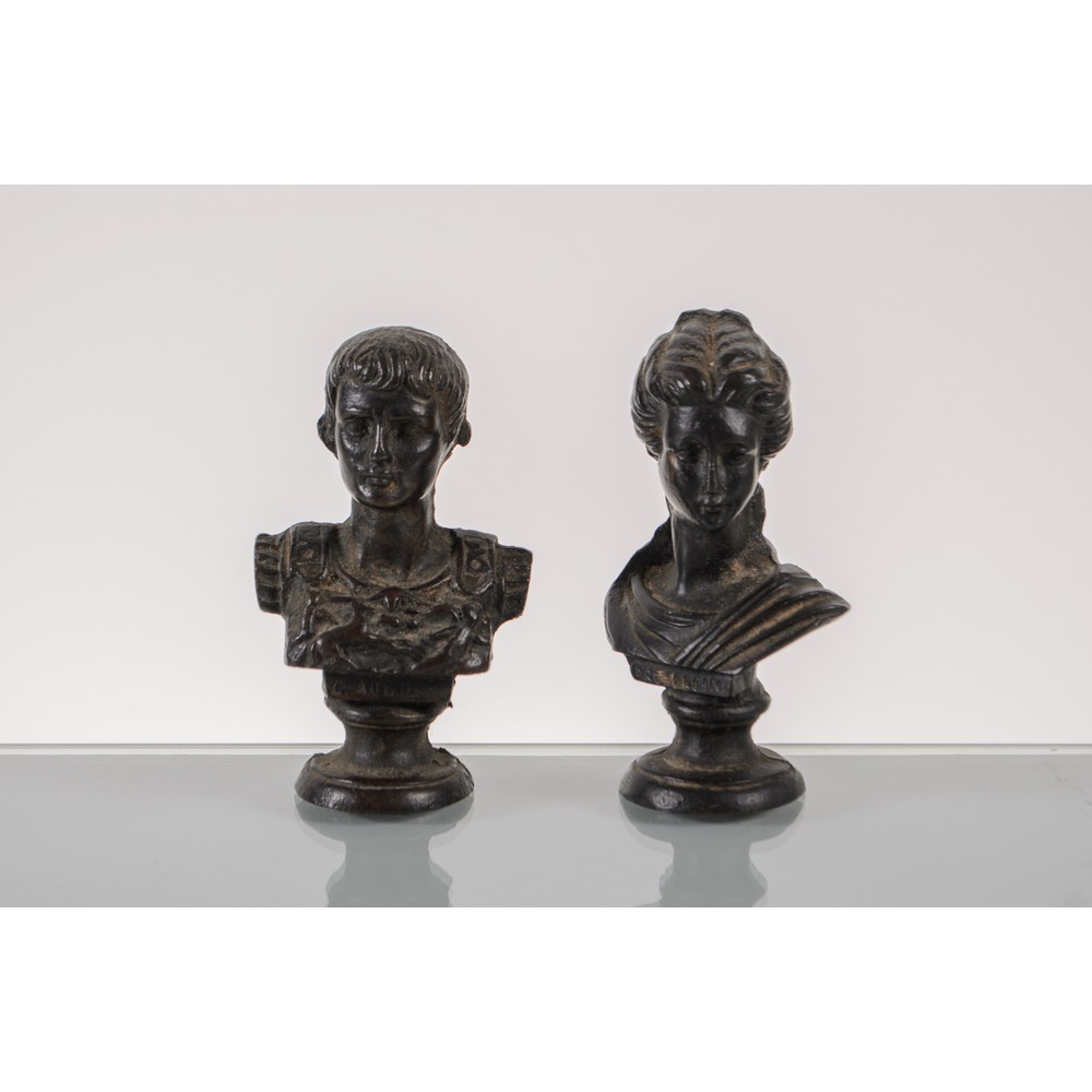 Coppia di piccoli busti in bronzo, fusione a cera persa raffiguranti "Imperatore e Imperatrice Romana".