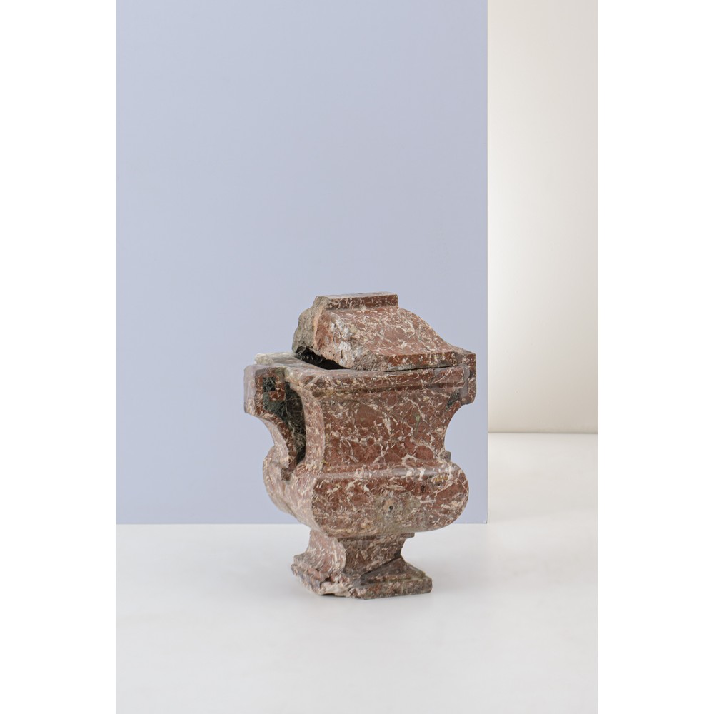 Vaso a due anse di epoca Luigi XIV in marmo diaspro (rotture e restauri).