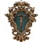 Cristo ligneo su croce in legno dorato ed ebanizzato entro acquasantiera di epoca Luigi XV in legno intagliato e dorato (usure e rotture).