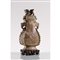 Bruciaprofumo in giada pregevolmente scolpita con cane di Fo sul coperchio e base in legno (piccole mancanze al coperchio)