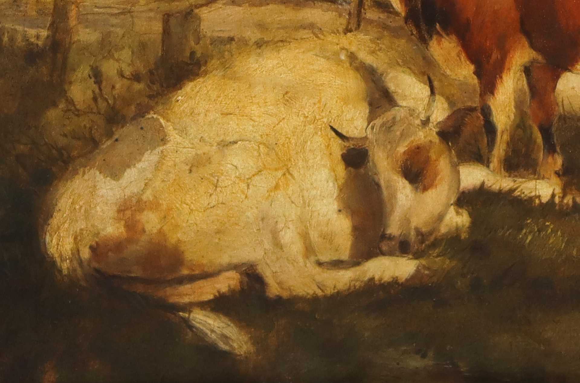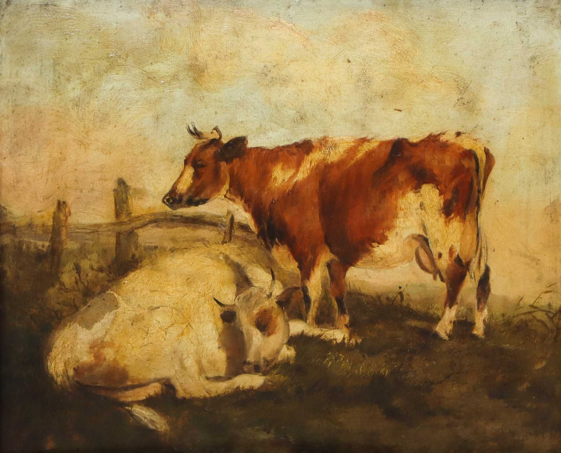 Mucche, 19° secolo painter Cm 25 x 30 , in cornice cm 37 x 42 Olio su cartoncino