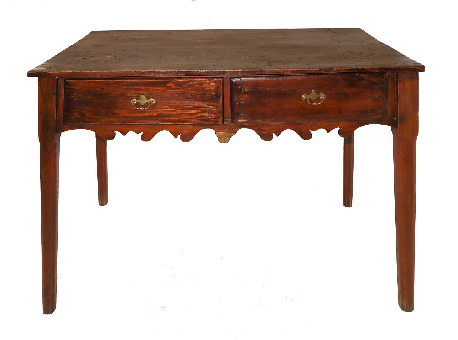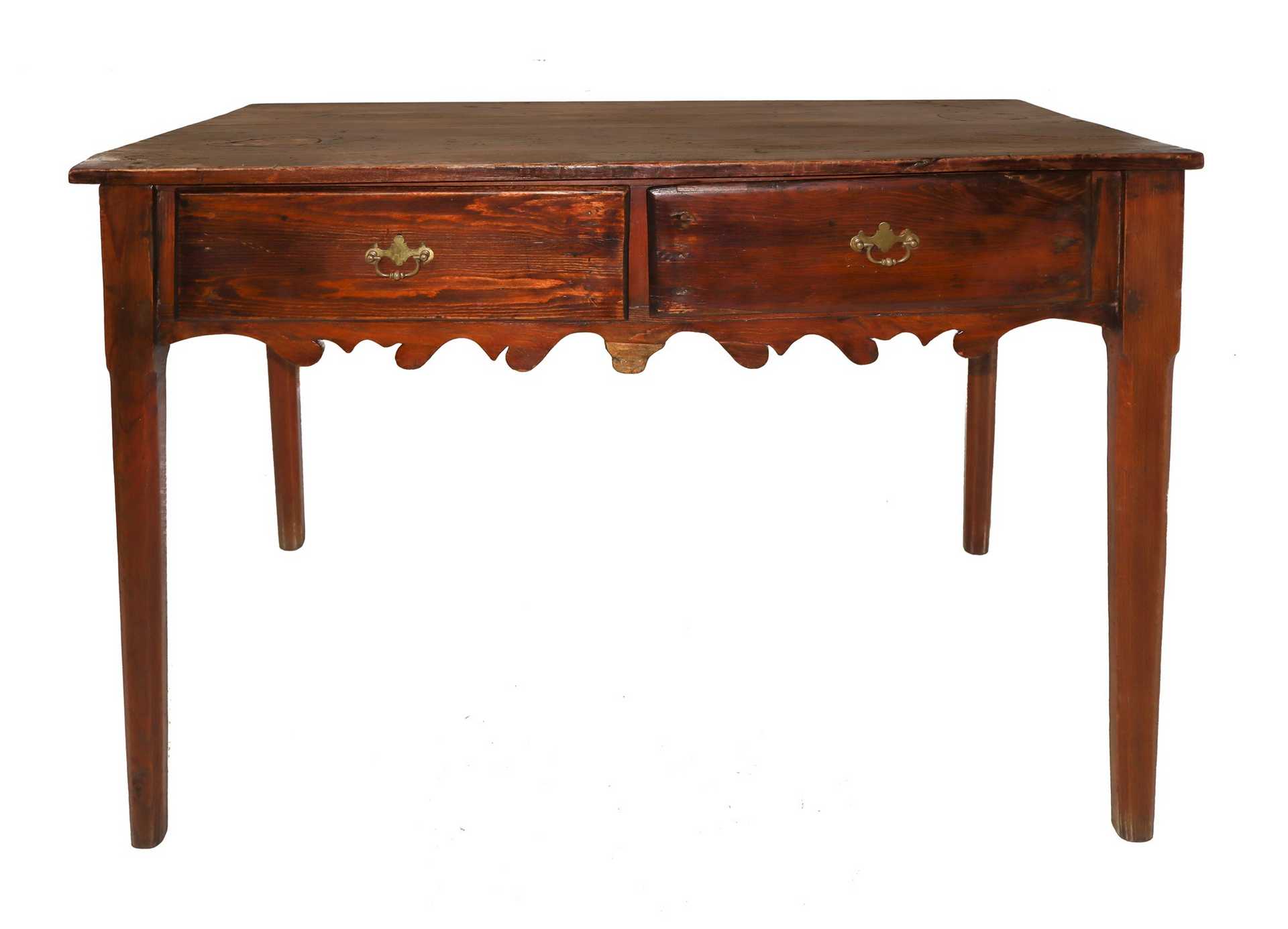 Scrittoio arte povera, Late 19° secolo h cm 78 x 106 x 58 Due cassetti piedi troncopiramidali. In legno di pich pine. SiciliaDue cassetti piedi troncopiramidali. In legno di pich pine. Sicilia