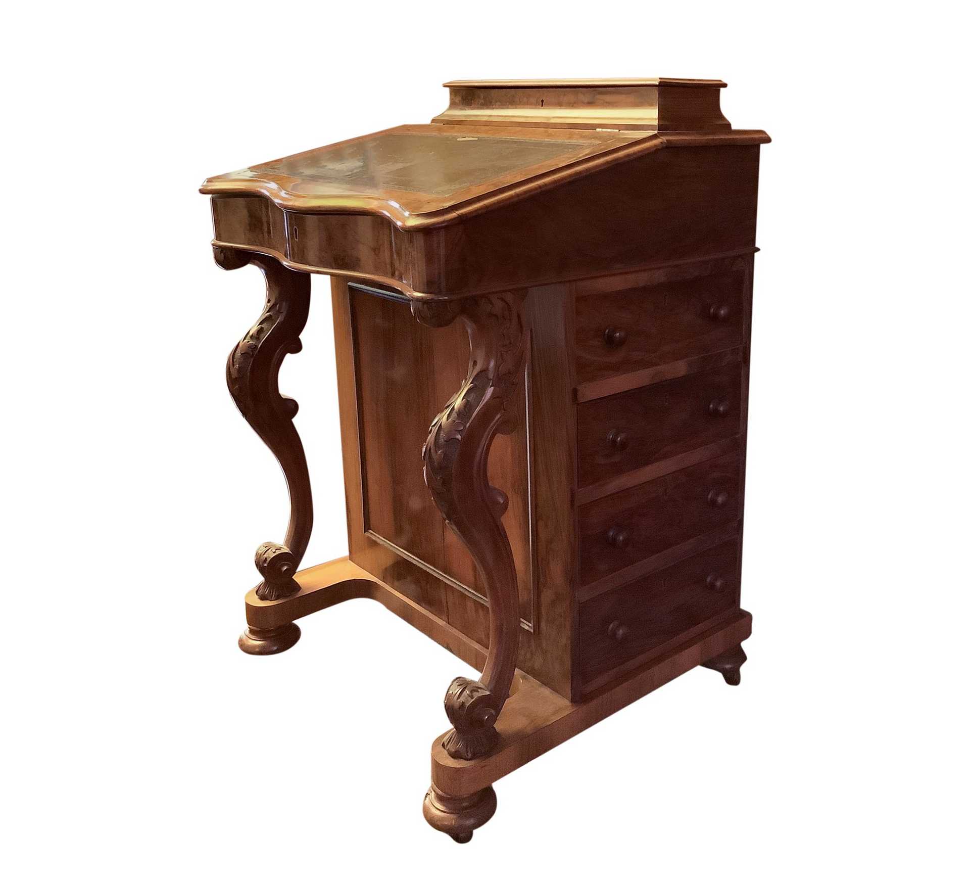 Mobile Davenport in legno e radica di noce, 19° secolo H cm 85x55x55 4 cassetti laterali, piedi a cabriol con foglie d'acanto intagliate. Base a cipolla schiacciate.4 cassetti laterali, piedi a cabriol con foglie d'acanto intagliate. Base a cipolla schiacciate.