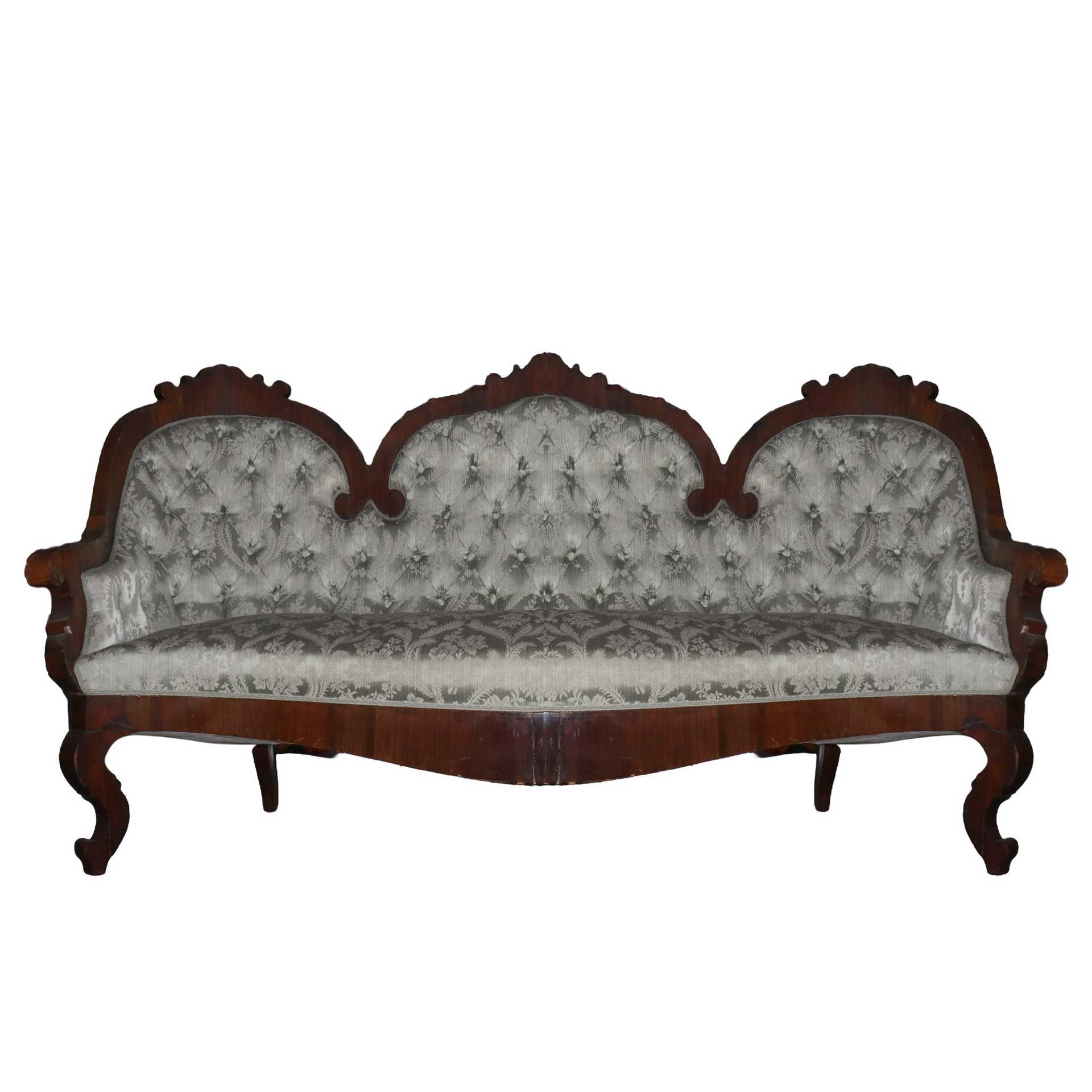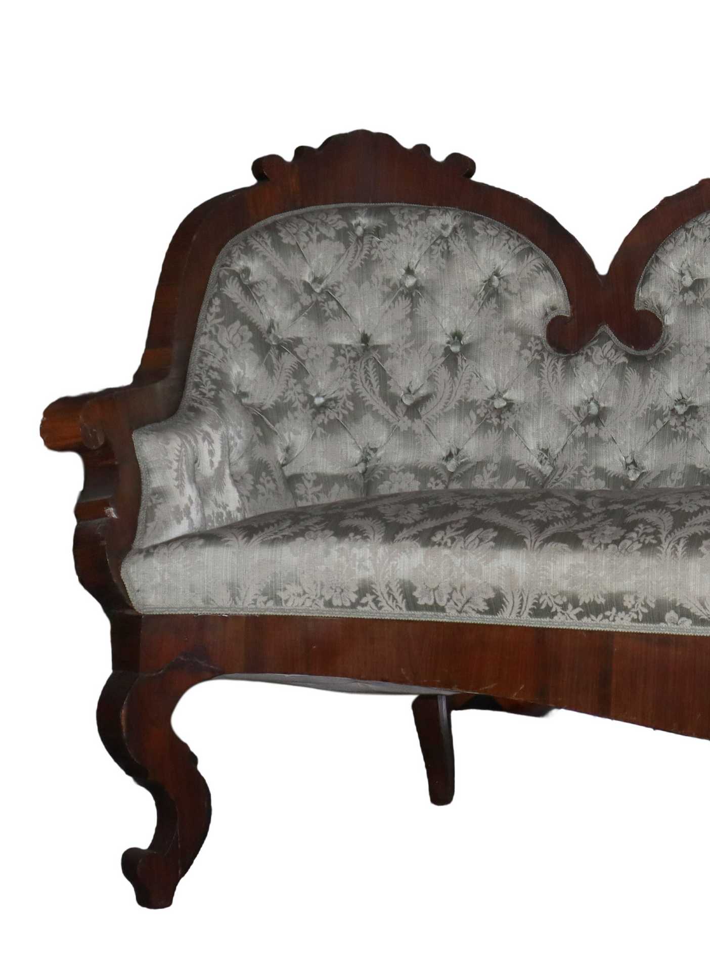 Divano Luigi Filippo, 19° secolo Sicily h cm 100 x 190 x 75 Con spalliera sagomata e tappezzata in Capitonné, braccioli a ricciolo.Con spalliera sagomata e tappezzata in Capitonné, braccioli a ricciolo.