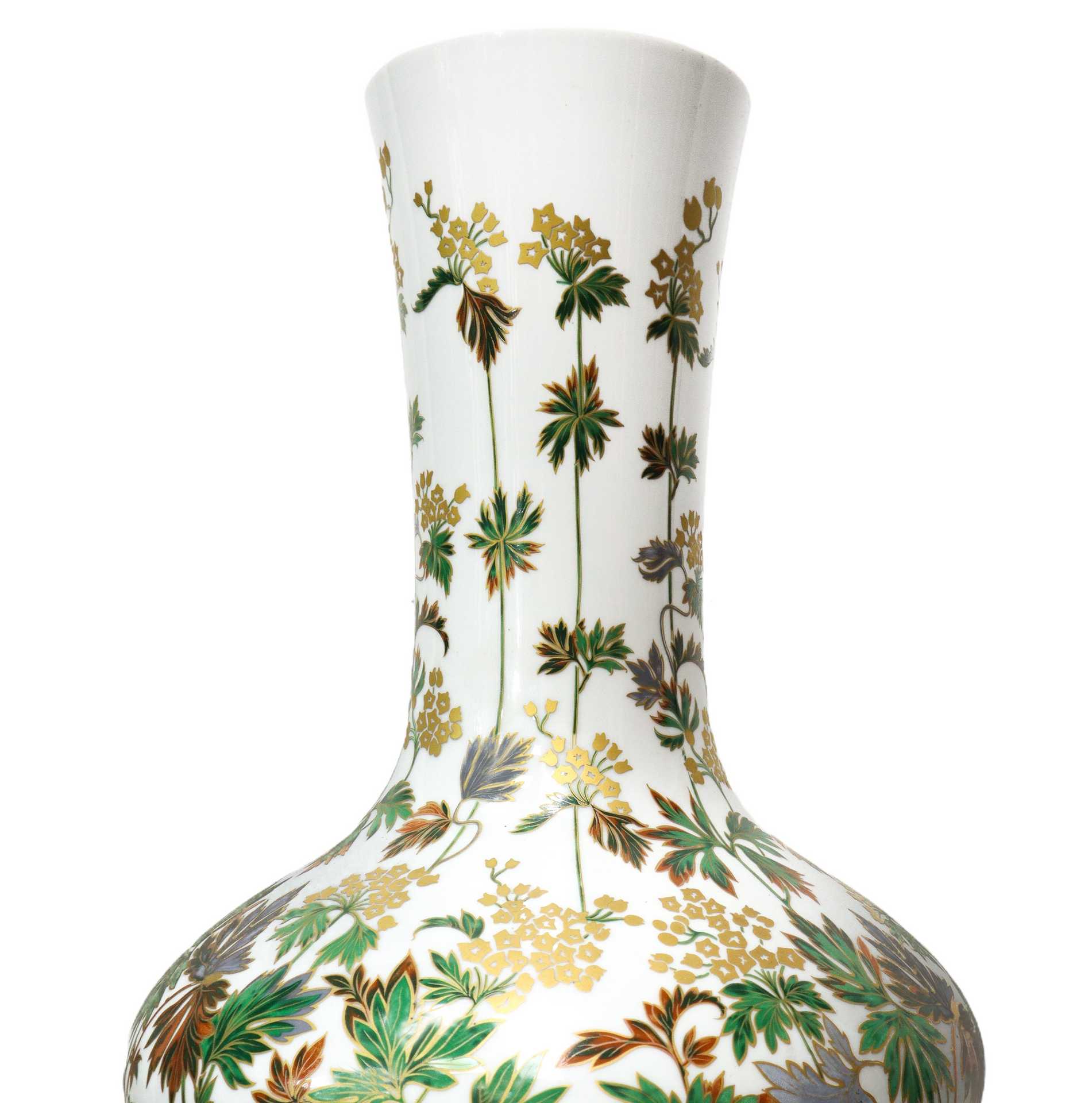 K&A Krautheim Selb Bavaria - Vaso cloisonne in porcellana bianca con decori a foglie verdi e fiori dorati, Mid 20° secolo H cm 50x28 Marchio alla base.Marchio alla base.