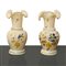 Coppia di vasi in opaline di vetro, beige, dipinto a mano con fiori policromi e bordo pieghettato, 19° secolo H cm 23x10,5 Segni del tempo.Segni del tempo.