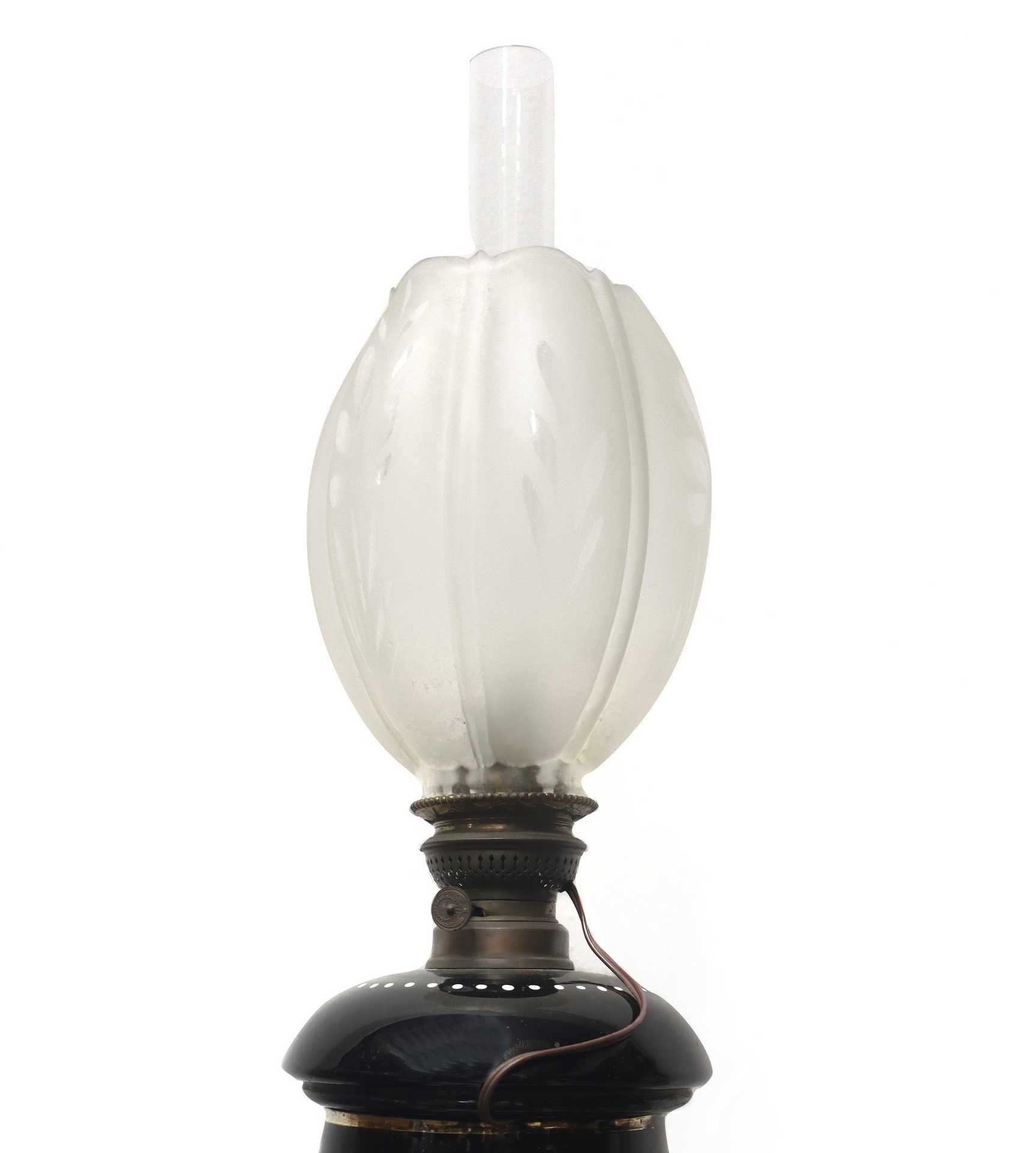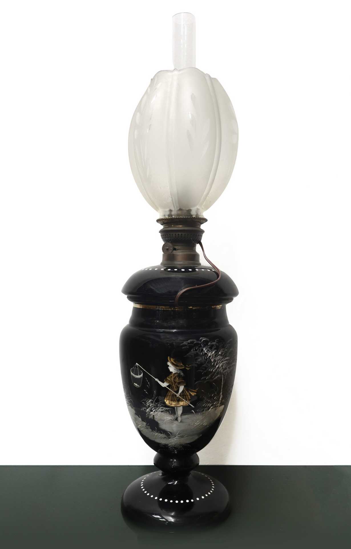 Lume in maiolica con decoro raffigurante bimba con cesto, 20° secolo H cm 72 x L cm 18