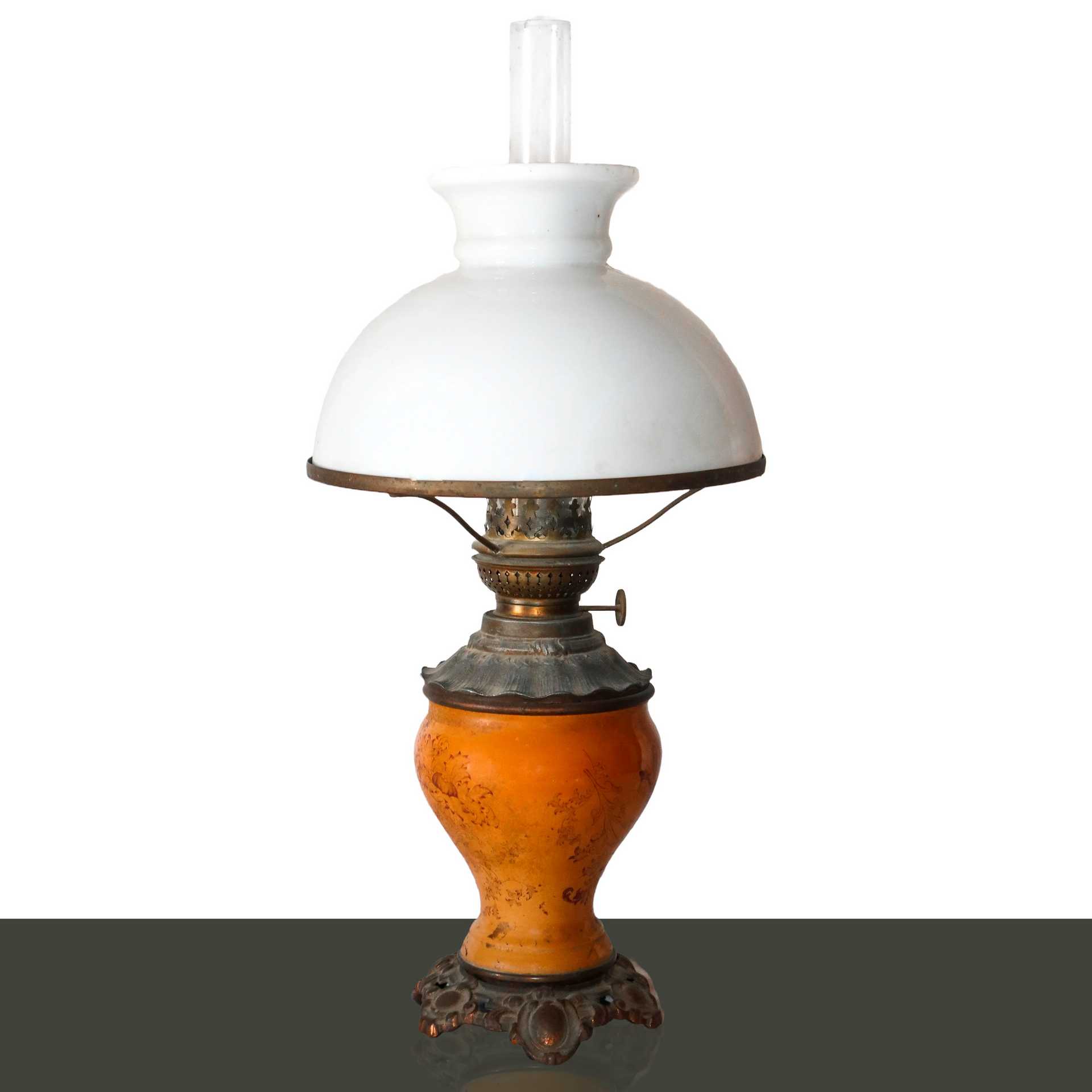 Coppia di lumi a petrolio con disegni floreali , 19° secolo