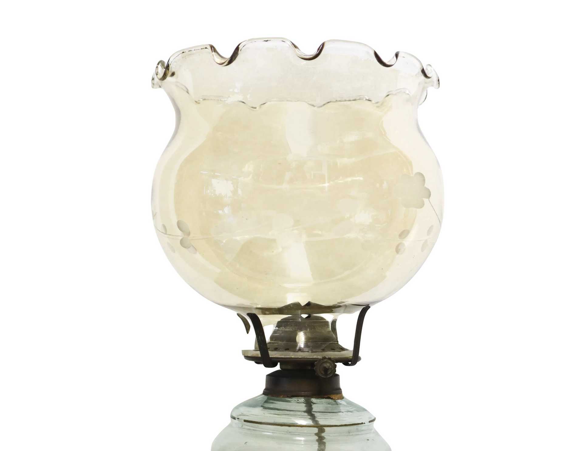 Lume a petrolio in vetro dipinto con motivi floreali, 20° secolo