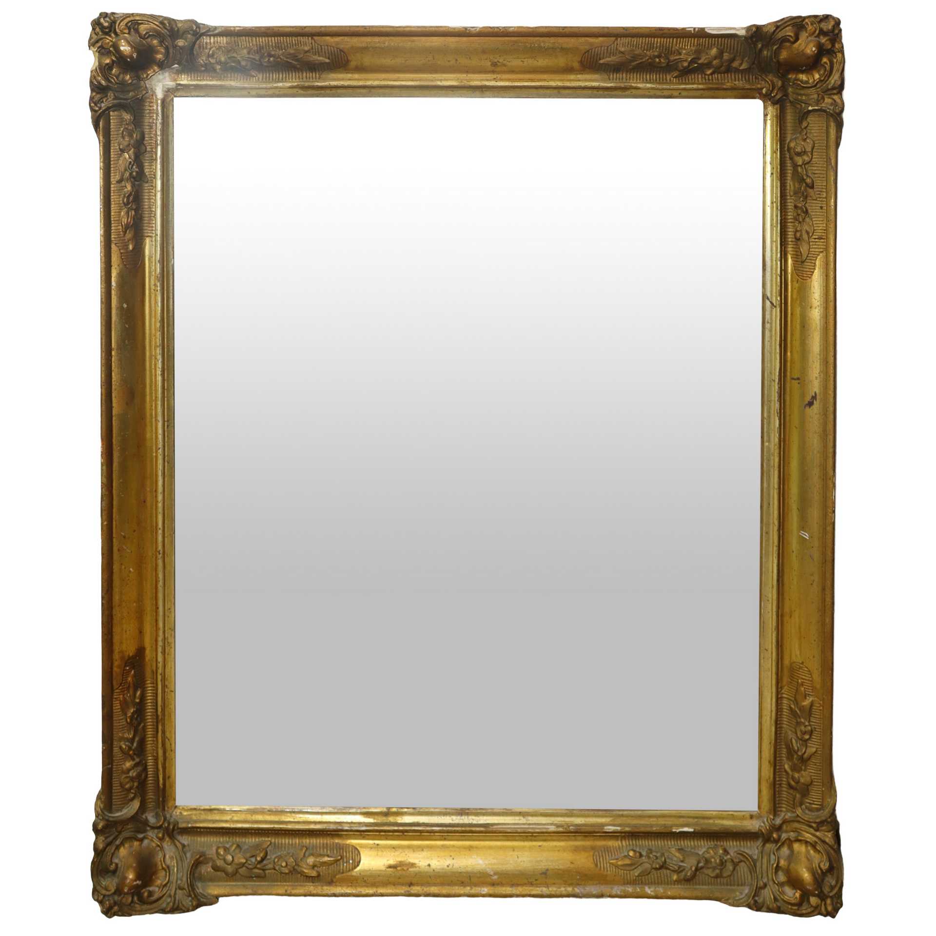 Specchiera rettangolare in legno dorato con applicazione agli angoli in pastiglia, 19° secolo H cm 73x60 Presenti alcune mancanze del legno della cornice.Presenti alcune mancanze del legno della cornice.