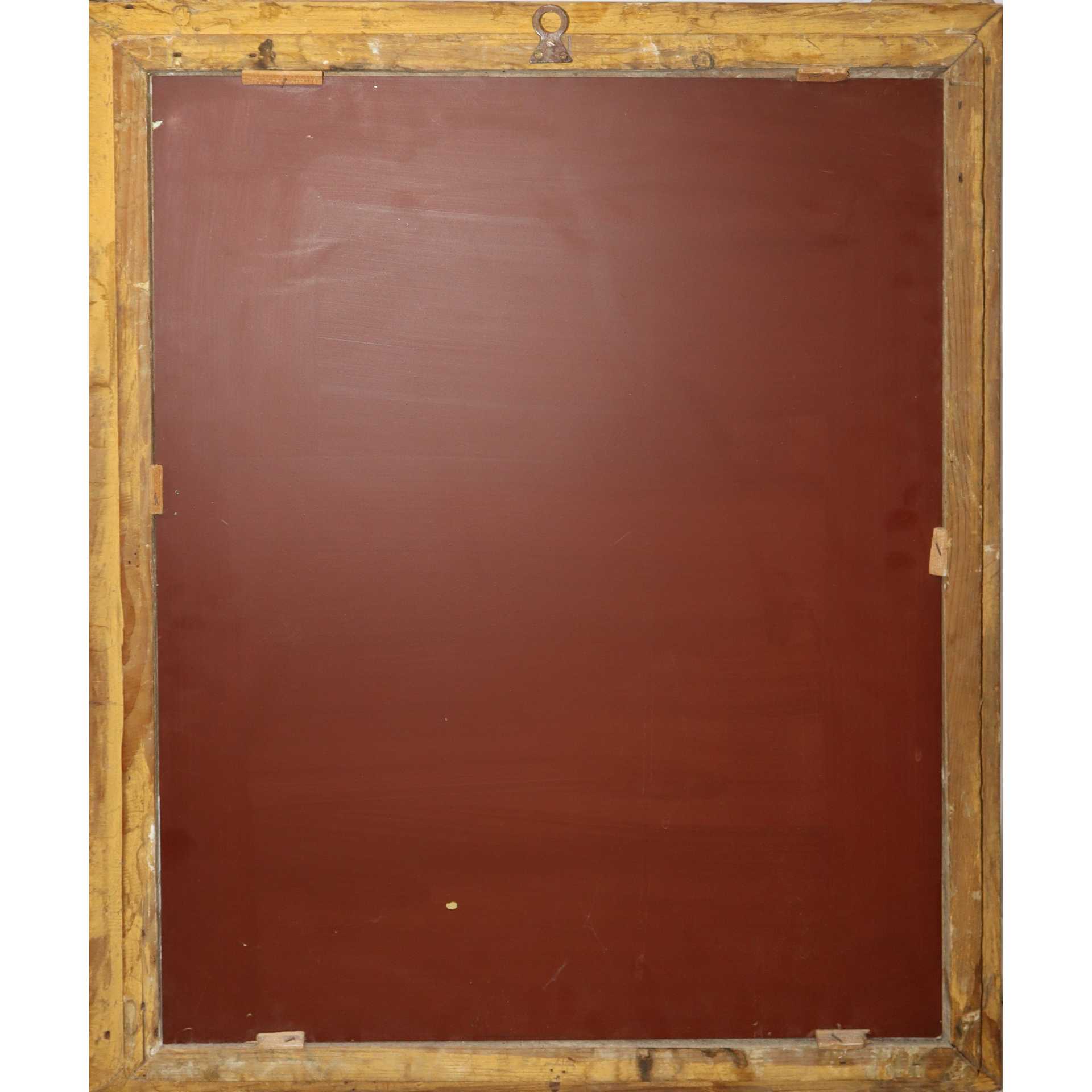 Specchiera rettangolare in legno dorato con applicazione agli angoli in pastiglia, 19° secolo