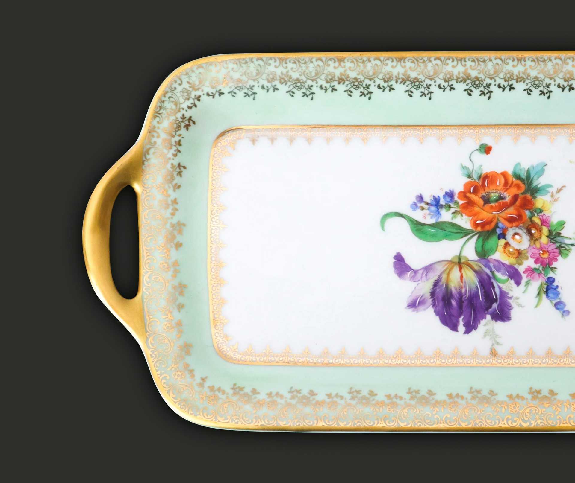 Limoges - Vassoio dorato con fiori policromi