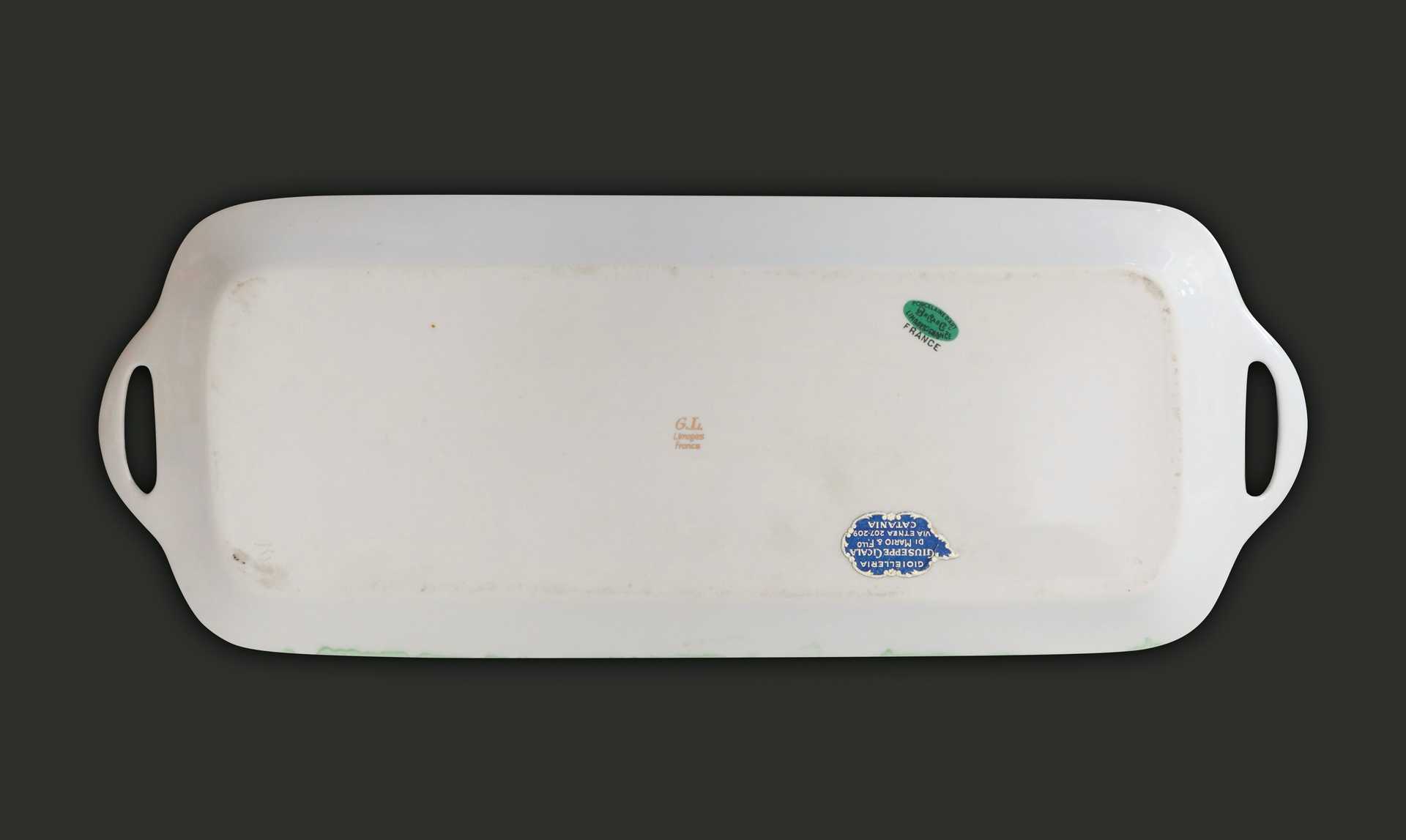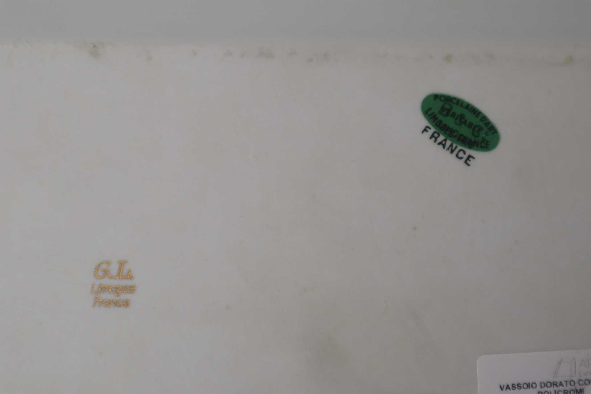 Limoges - Vassoio dorato con fiori policromi cm 41 x 15