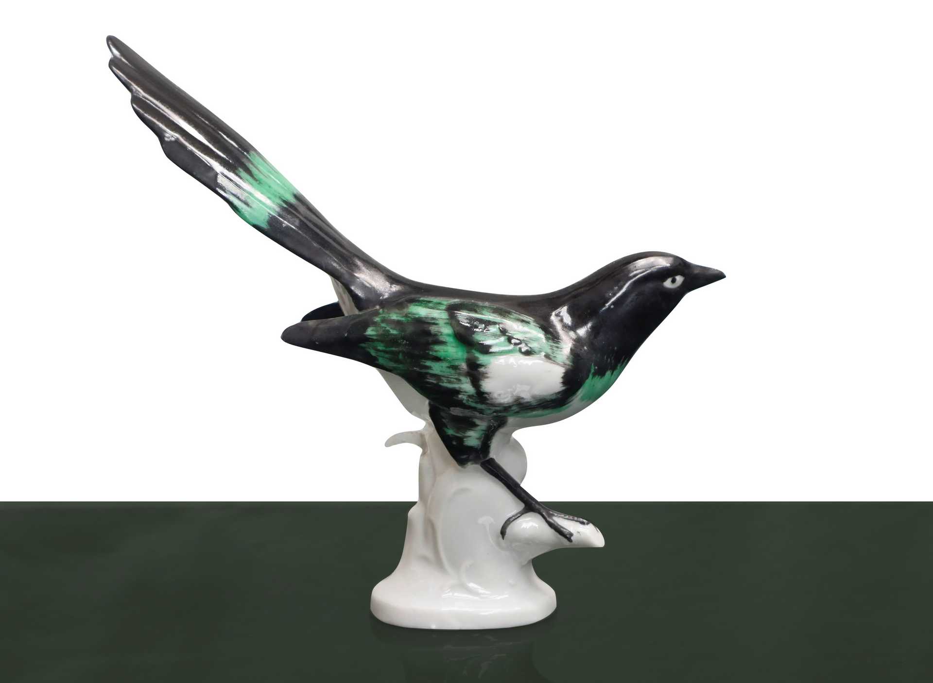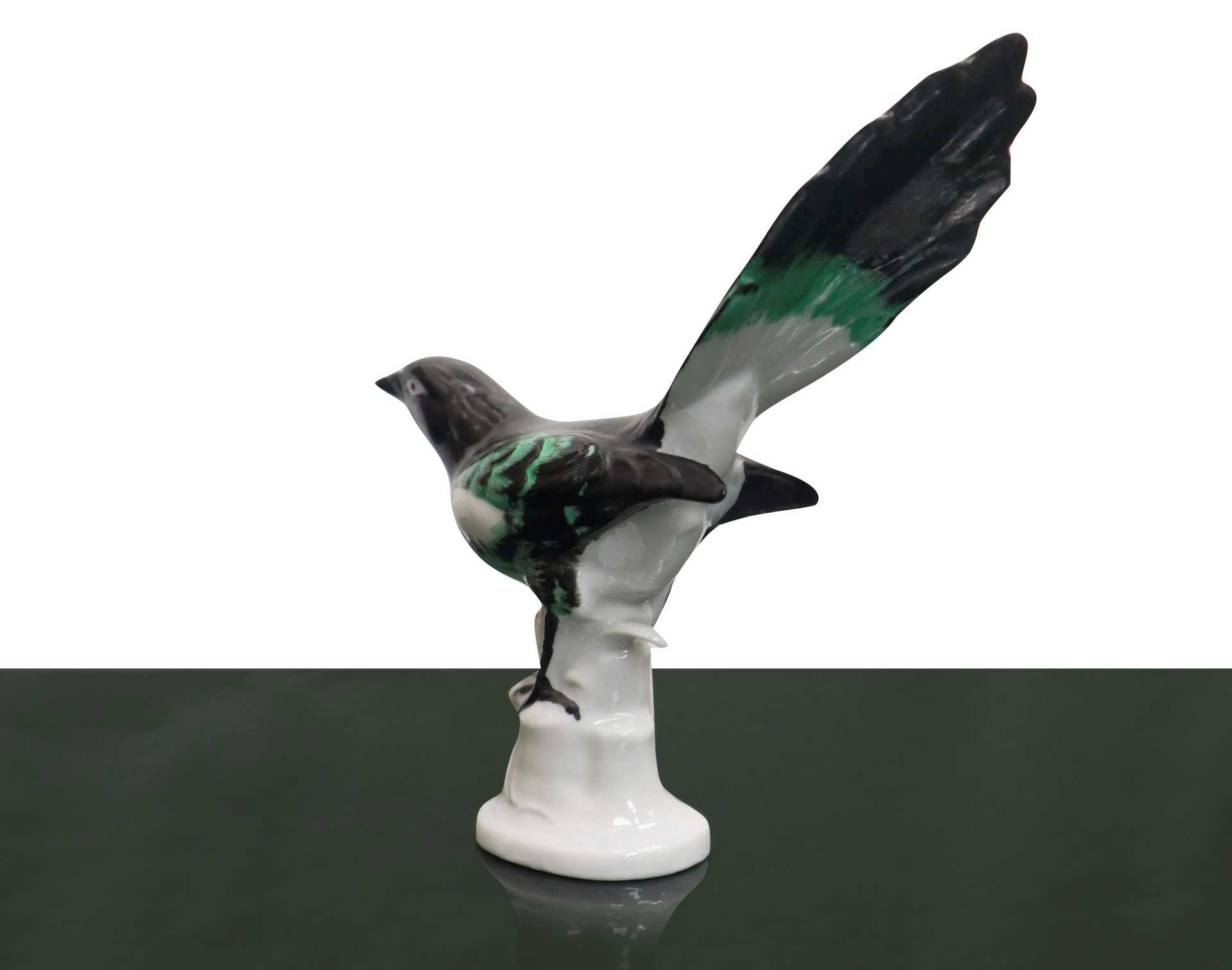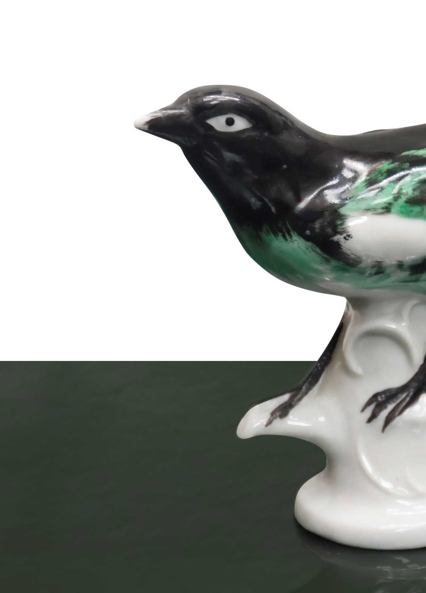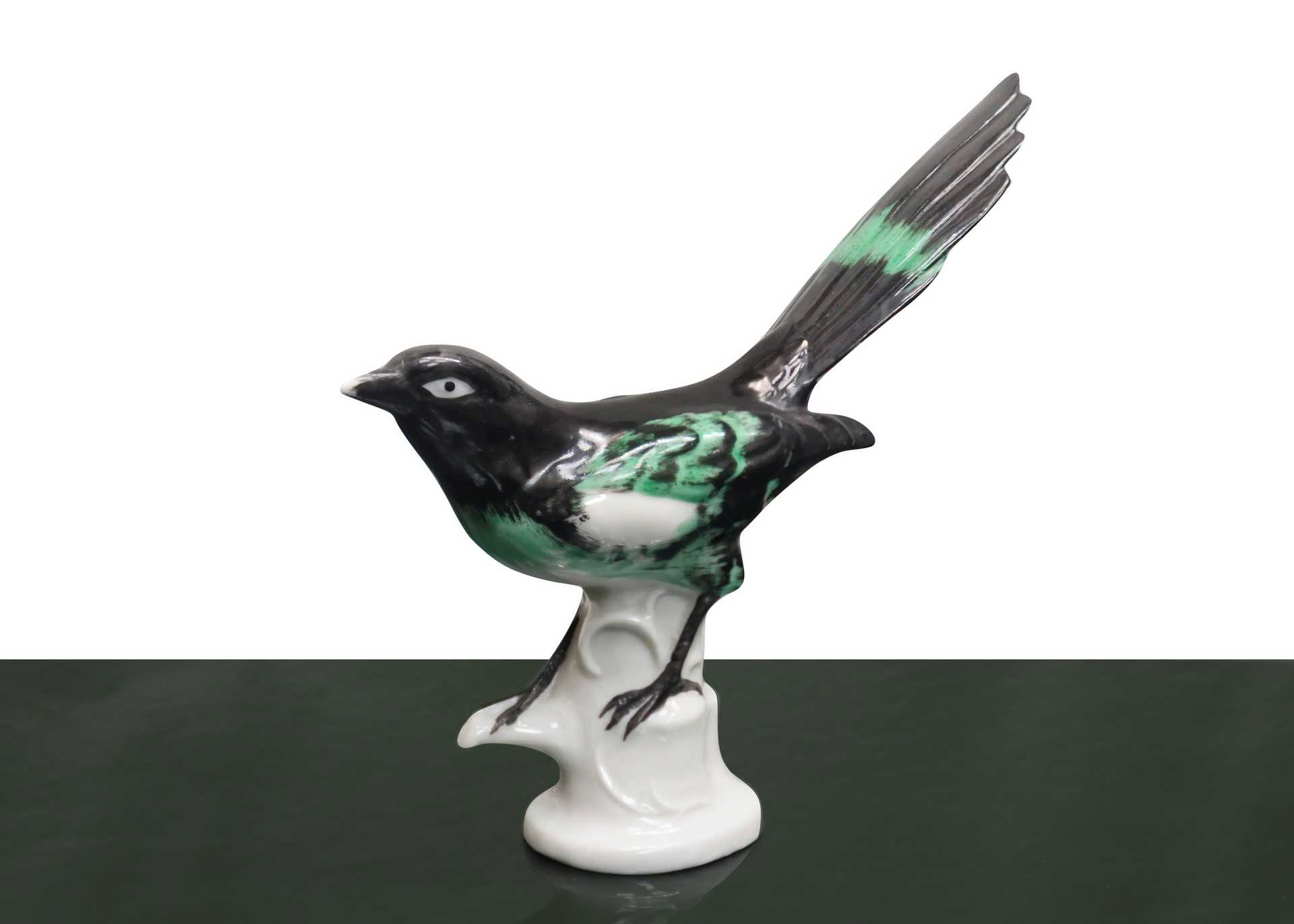 Uccello nei toni del nero e del verde H cm 15,5 L cm 15,5