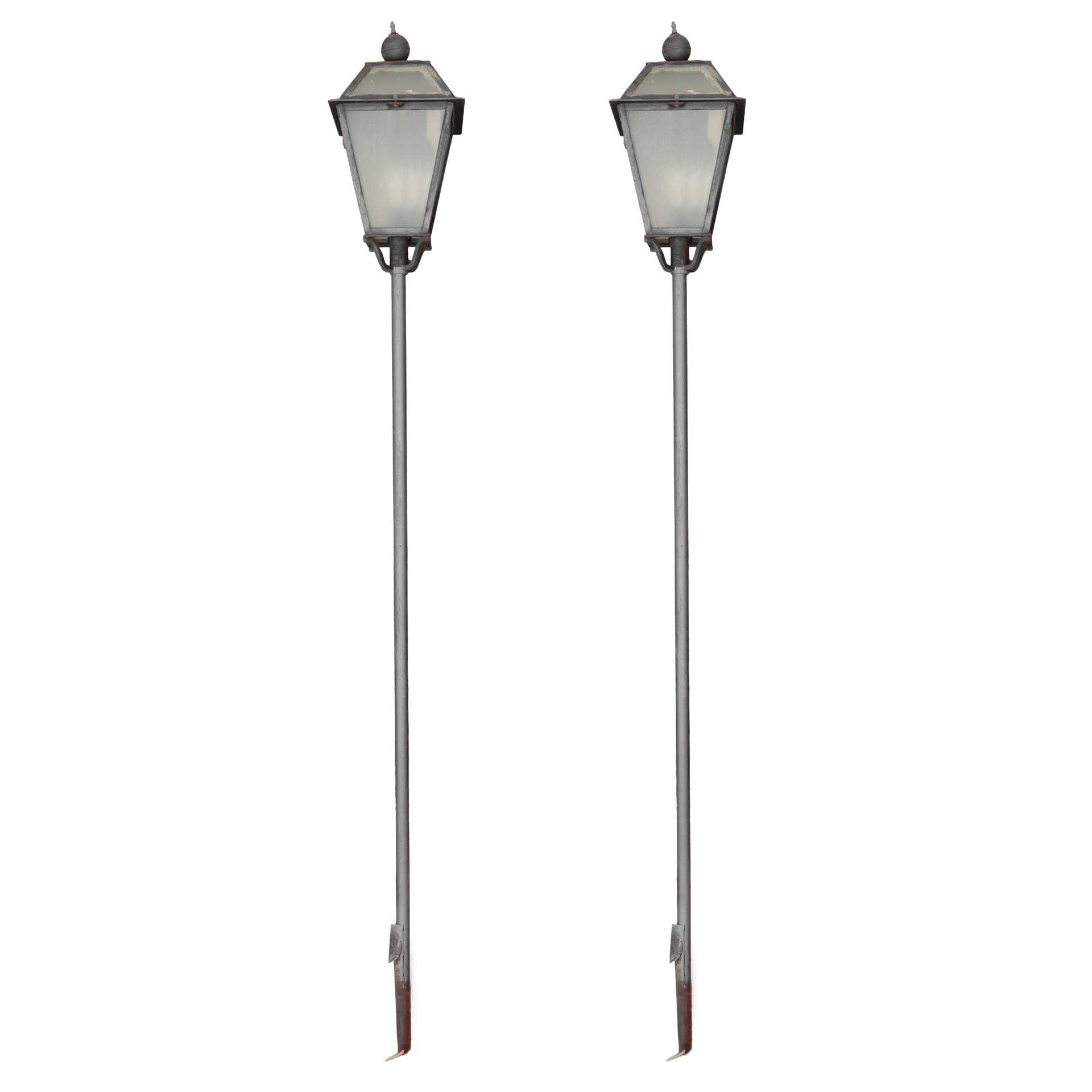 Coppia di lampioni con palo di ferro