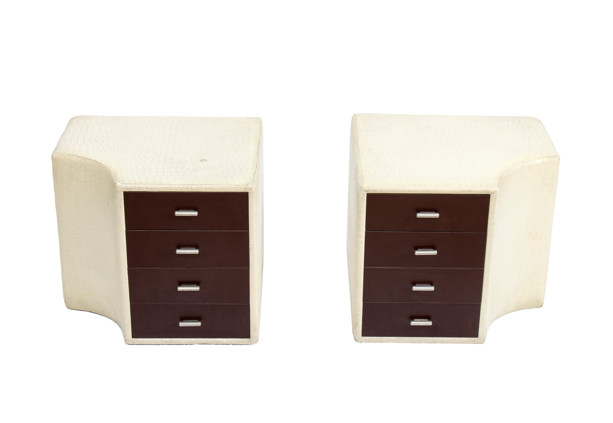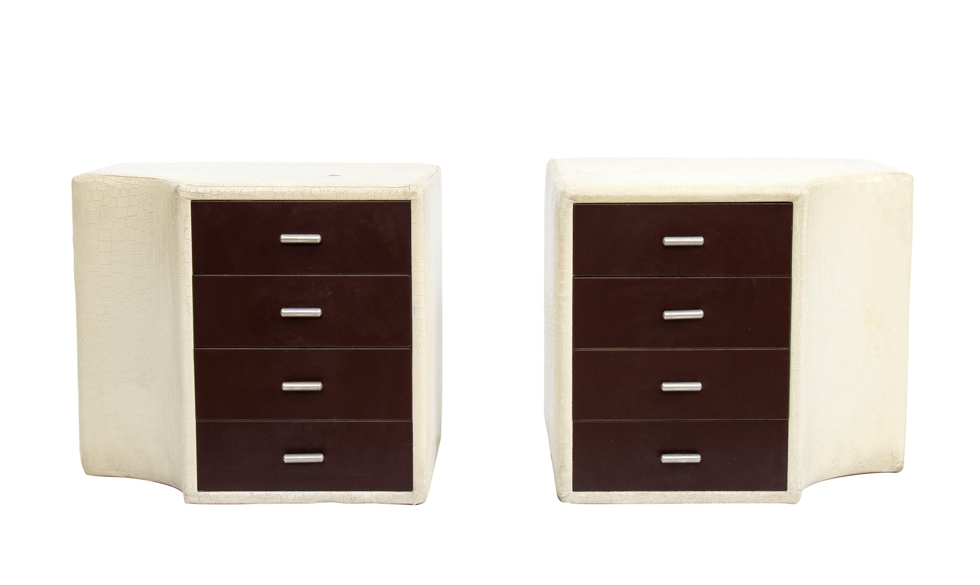 Coppia di comodini in pelle bianca