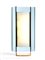 Lampada da tavolo con struttura in ottone e cristalli curvati trasparenti e blu. Modello 2187