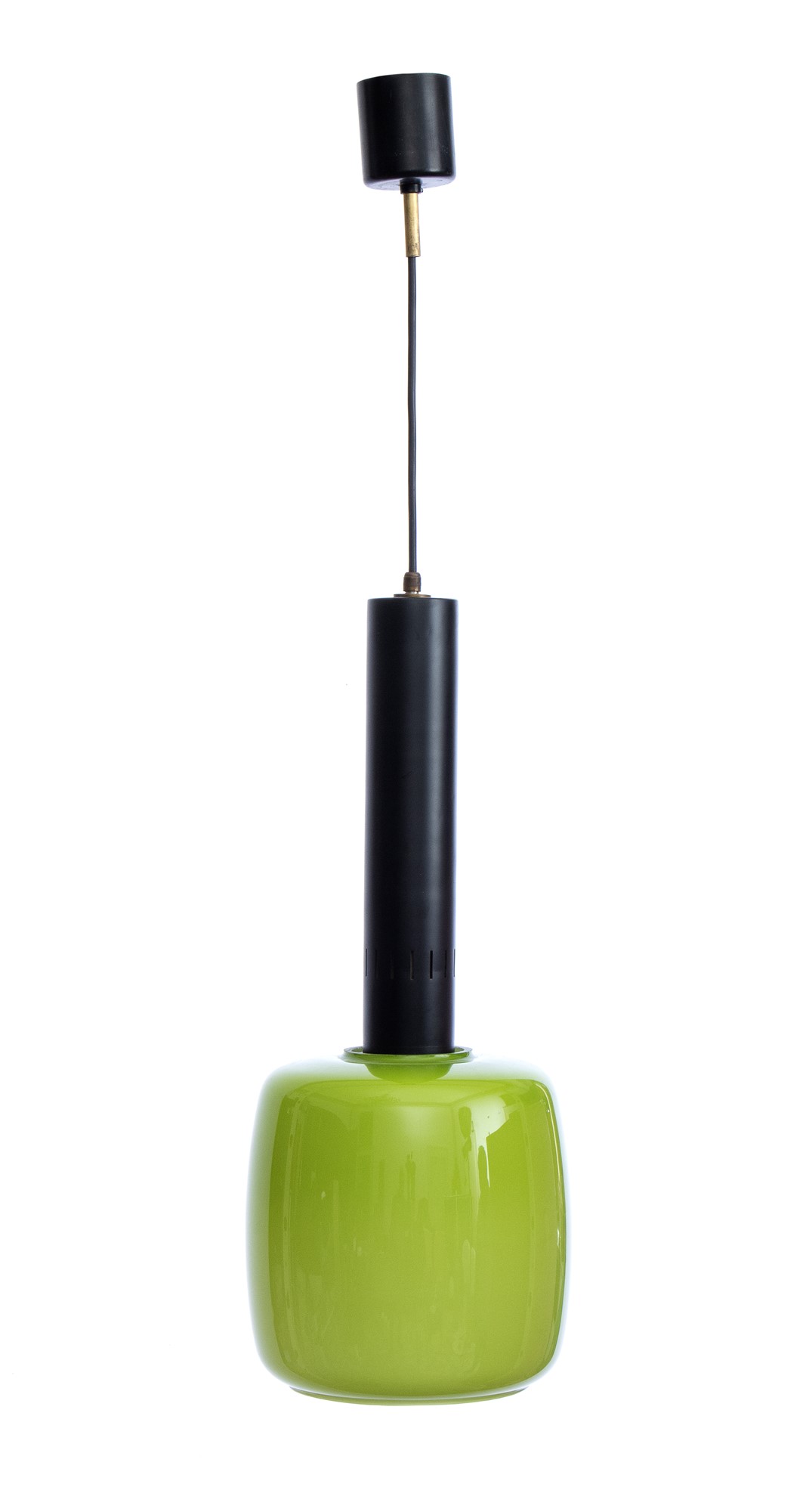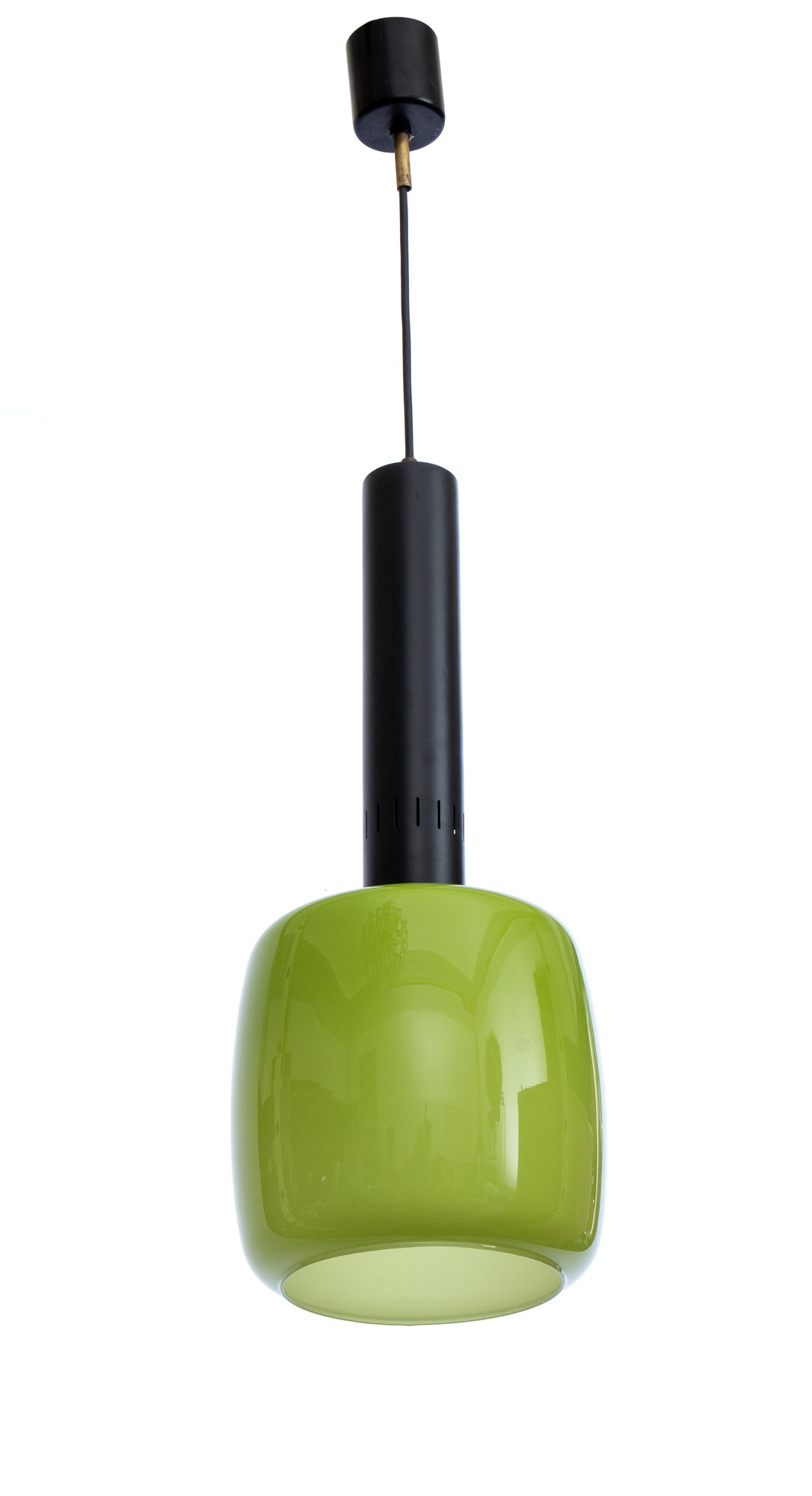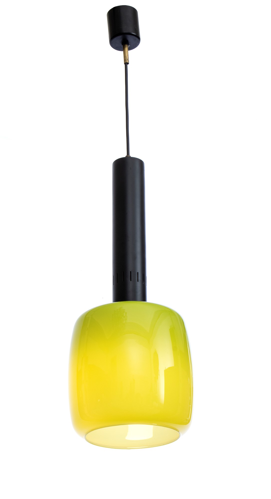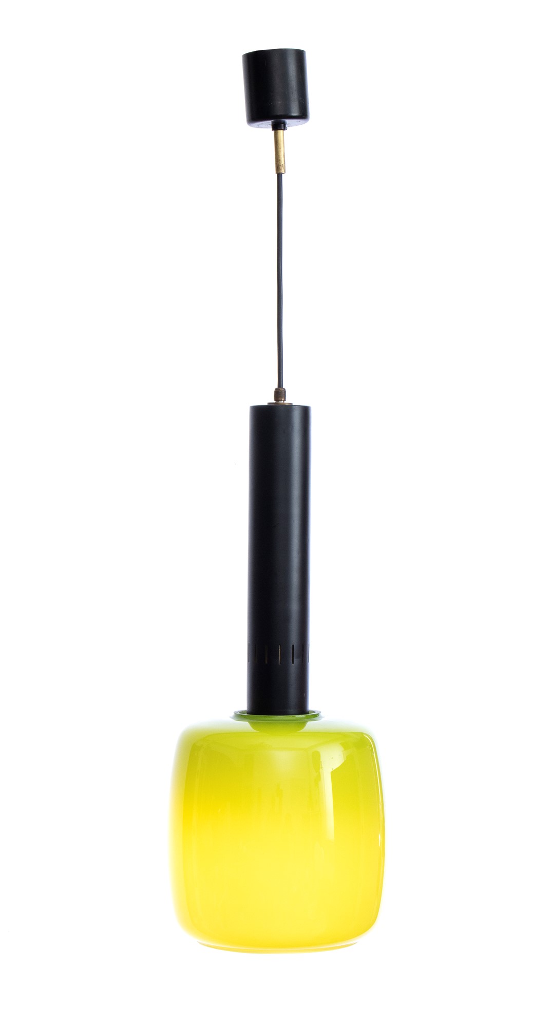 Lot 156 | Lampada a sospensione con struttura in ottone e metallo. Diffusore in vetro colorato