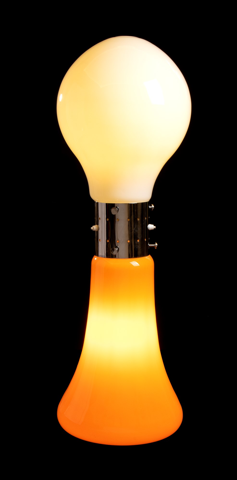 Lampada da terra Birillo composta da vetri soffiati di Murano e cilindro cromato Carlo Nason