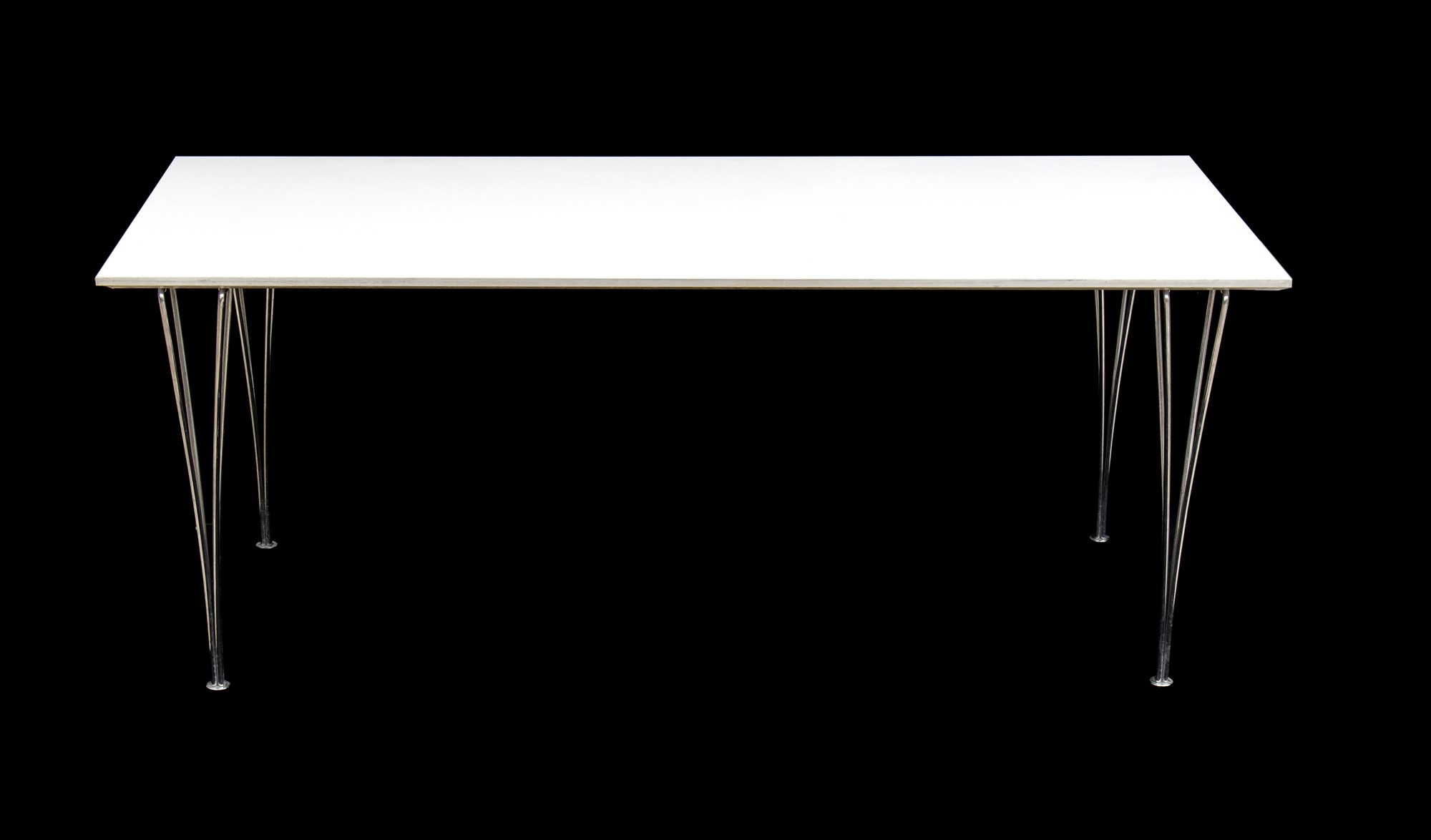 Scrivania con piano in legno bianco laccato e struttura in acciaio