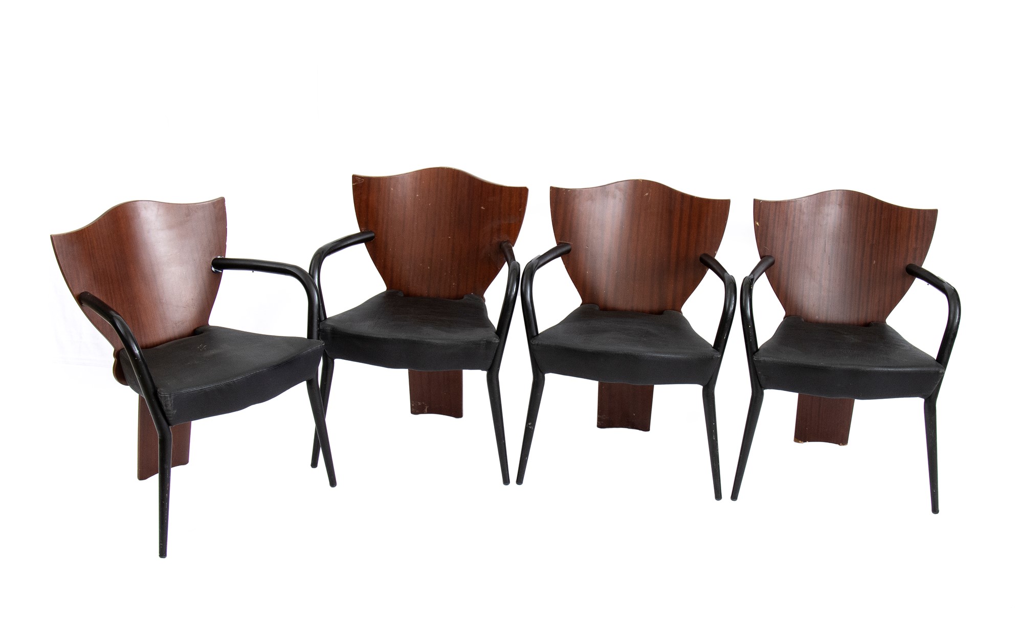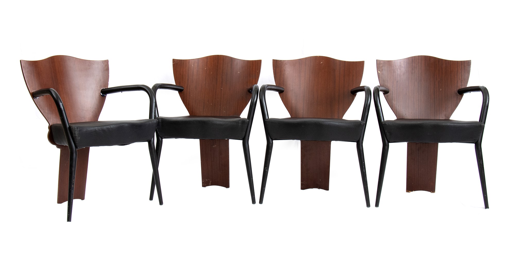 Quattro sedie mod. Dalami con struttura in legno e metallo verniciato. Borek Sipel (attribuito a)
