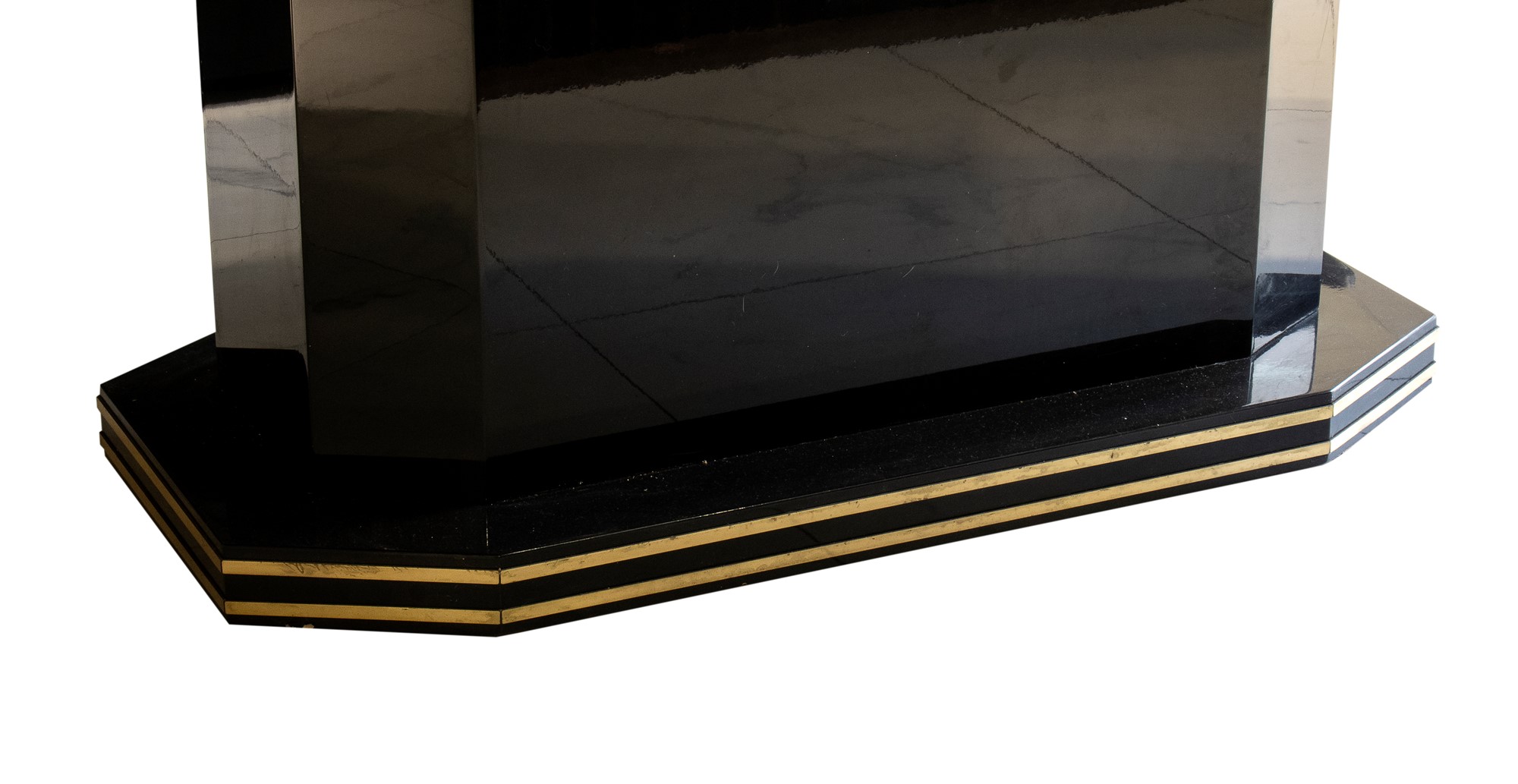Tavolo ottagonale in legno laccato nero con inserti in ottone