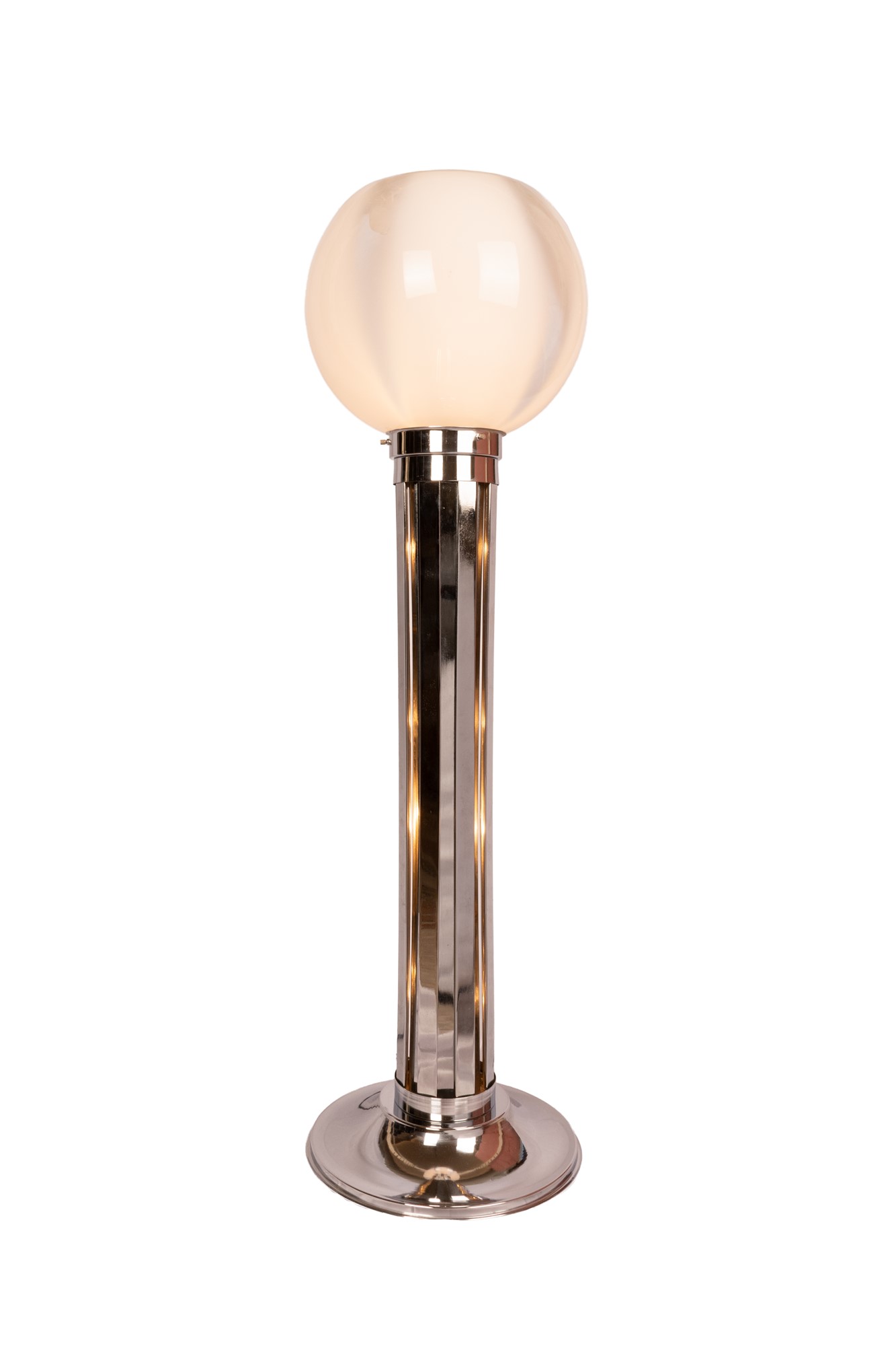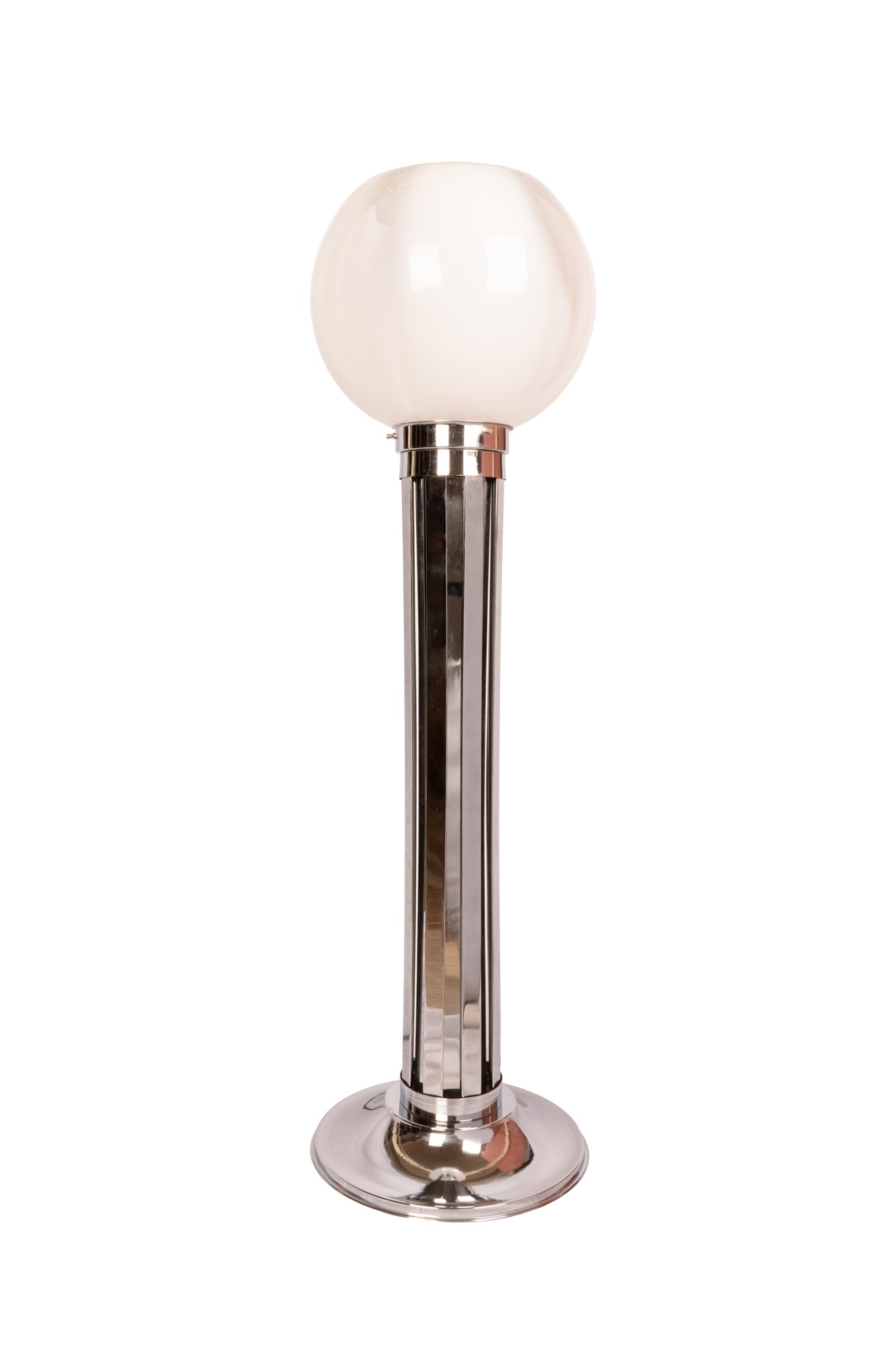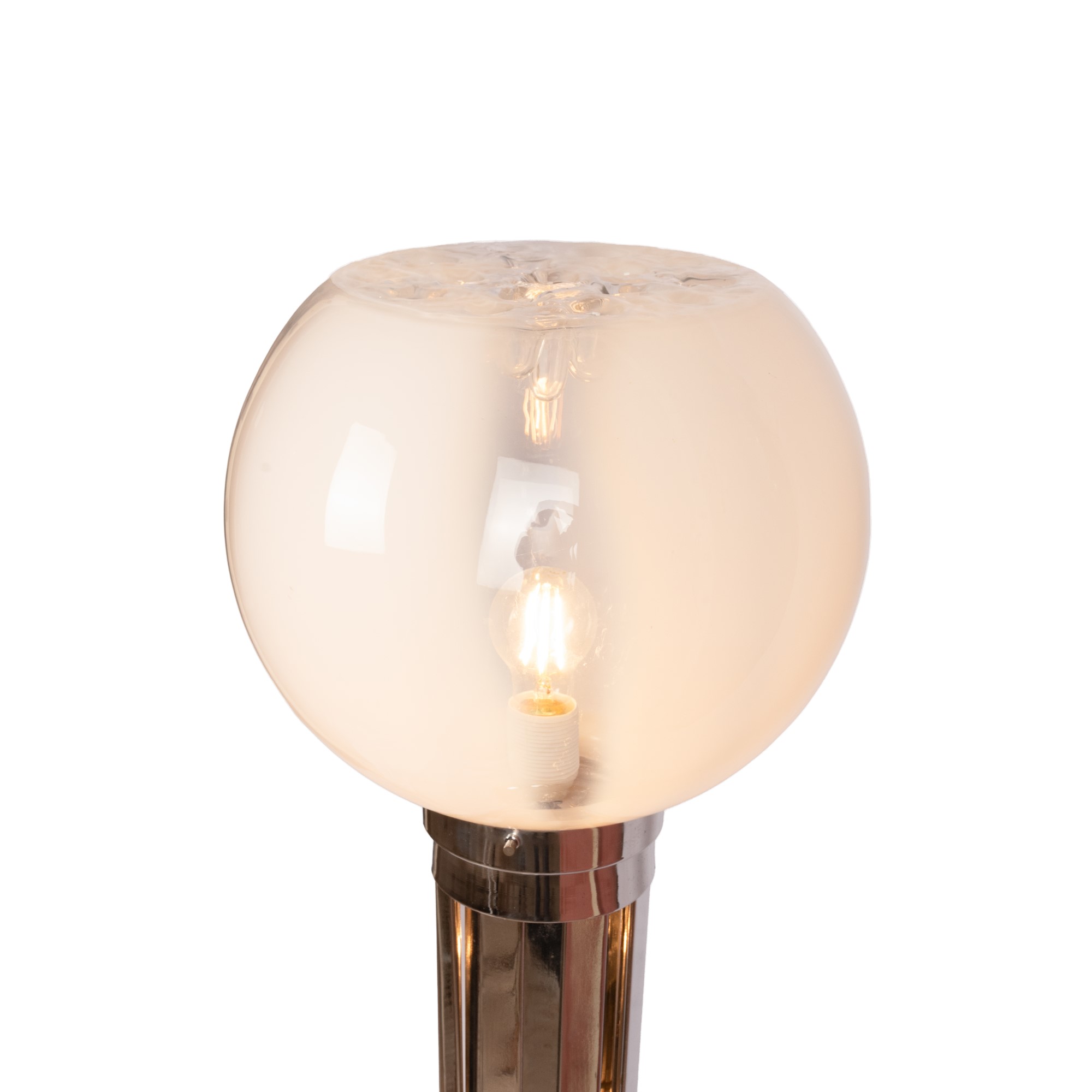 Lot 211 | Lampada da terra con diffusore in vetro soffiato, fusto e base in acciaio.
