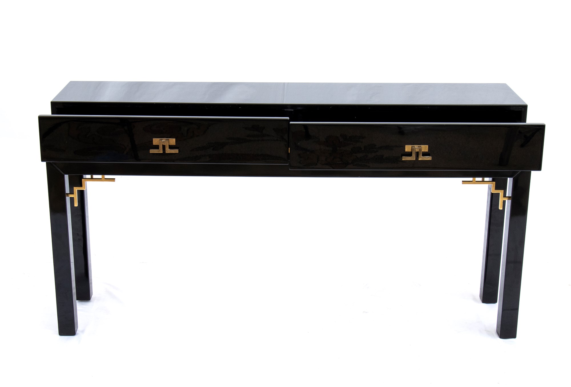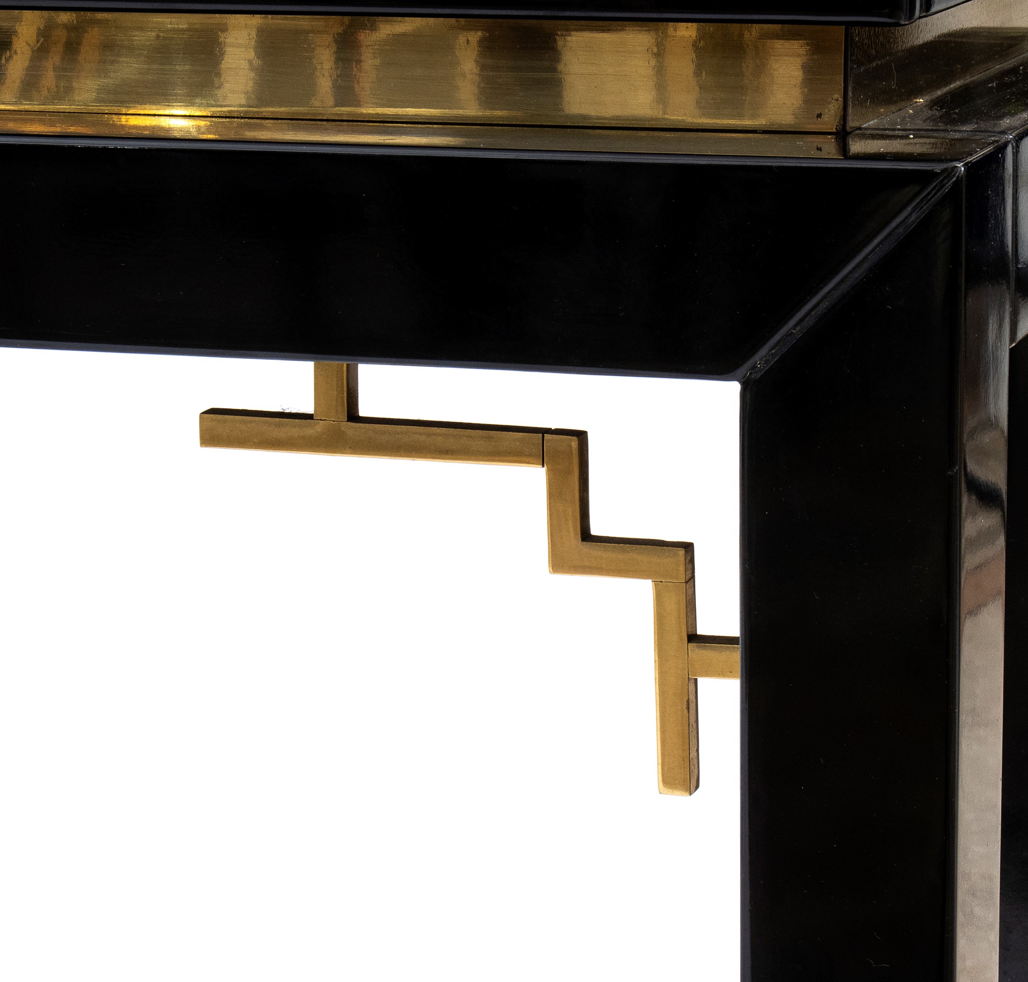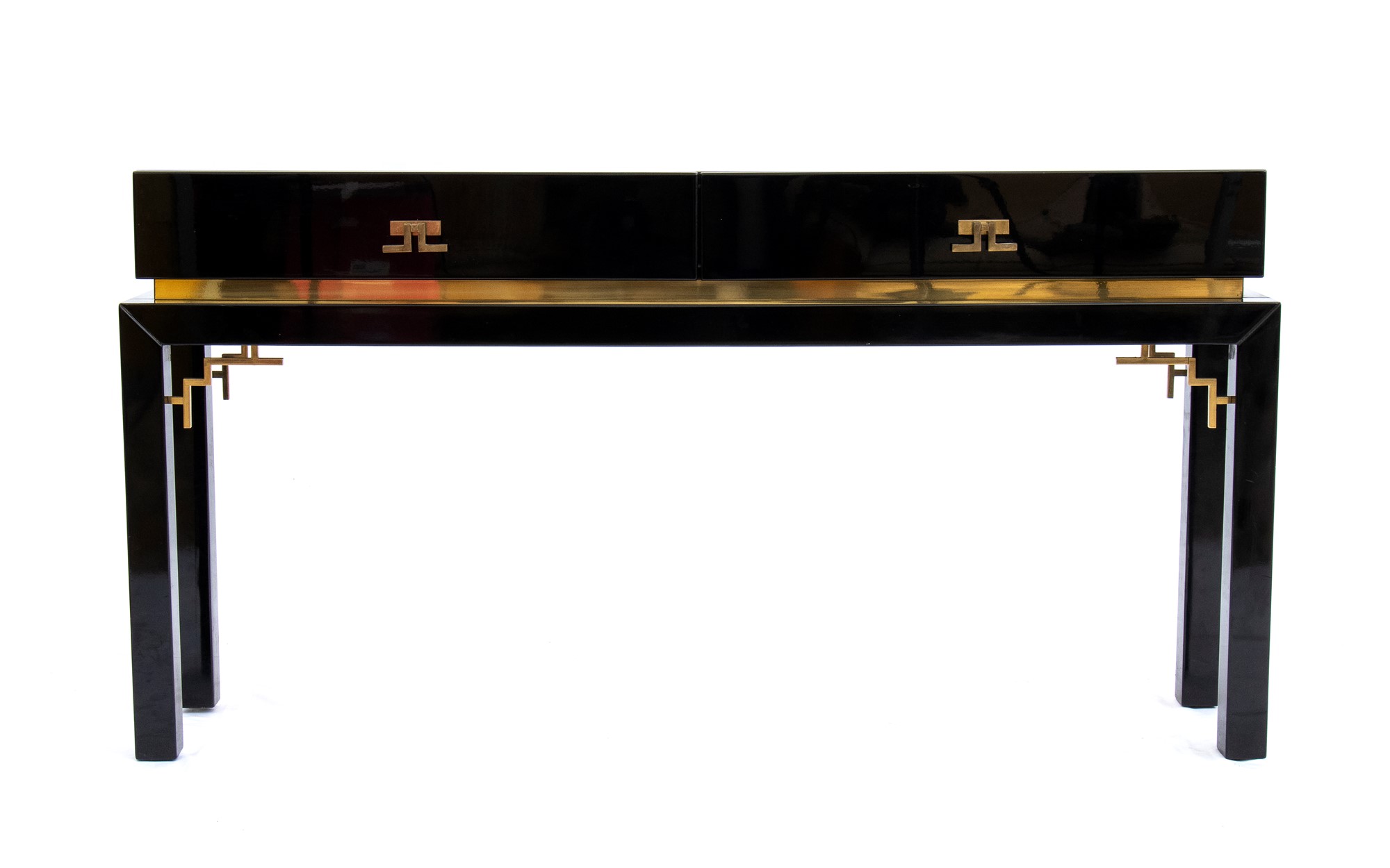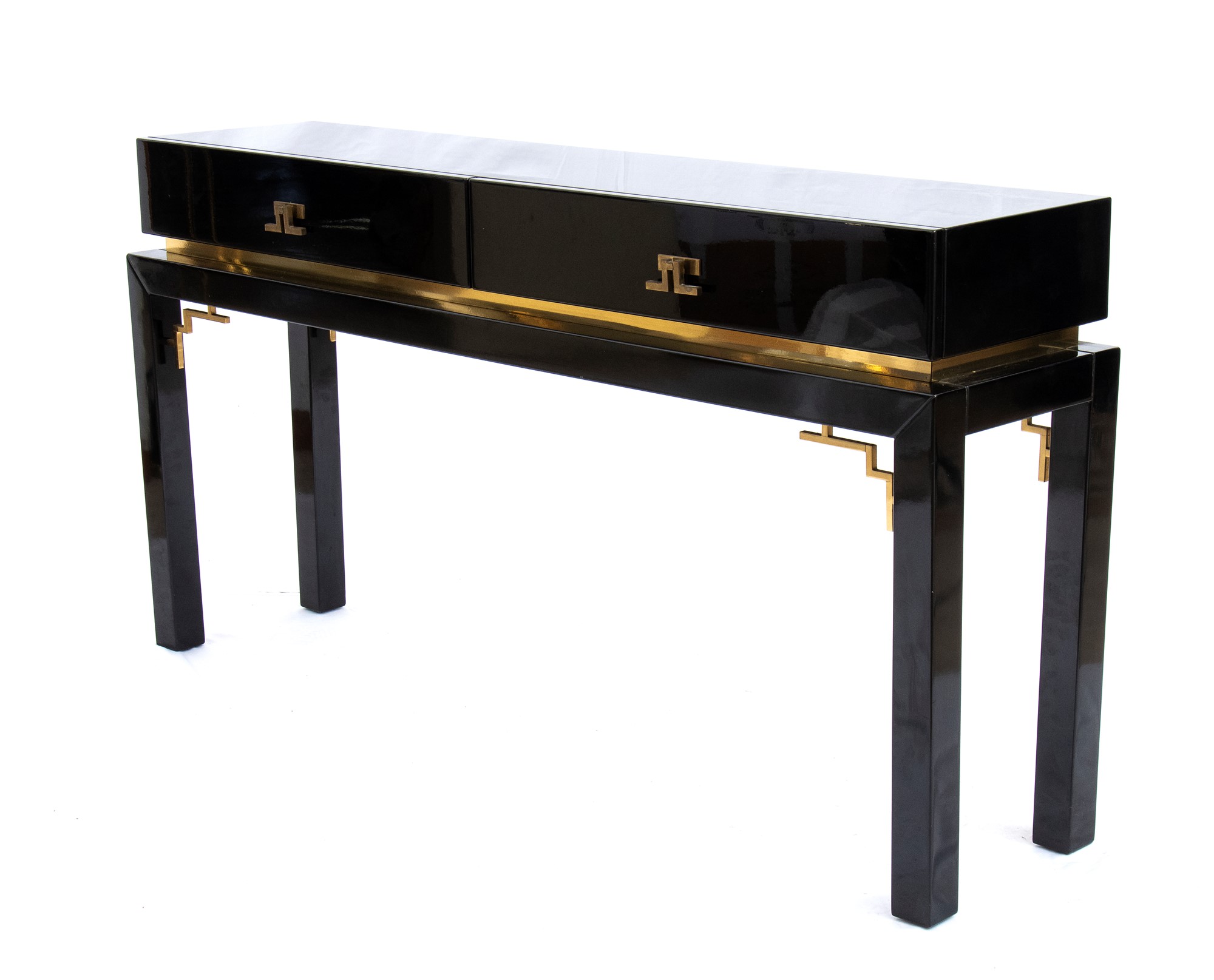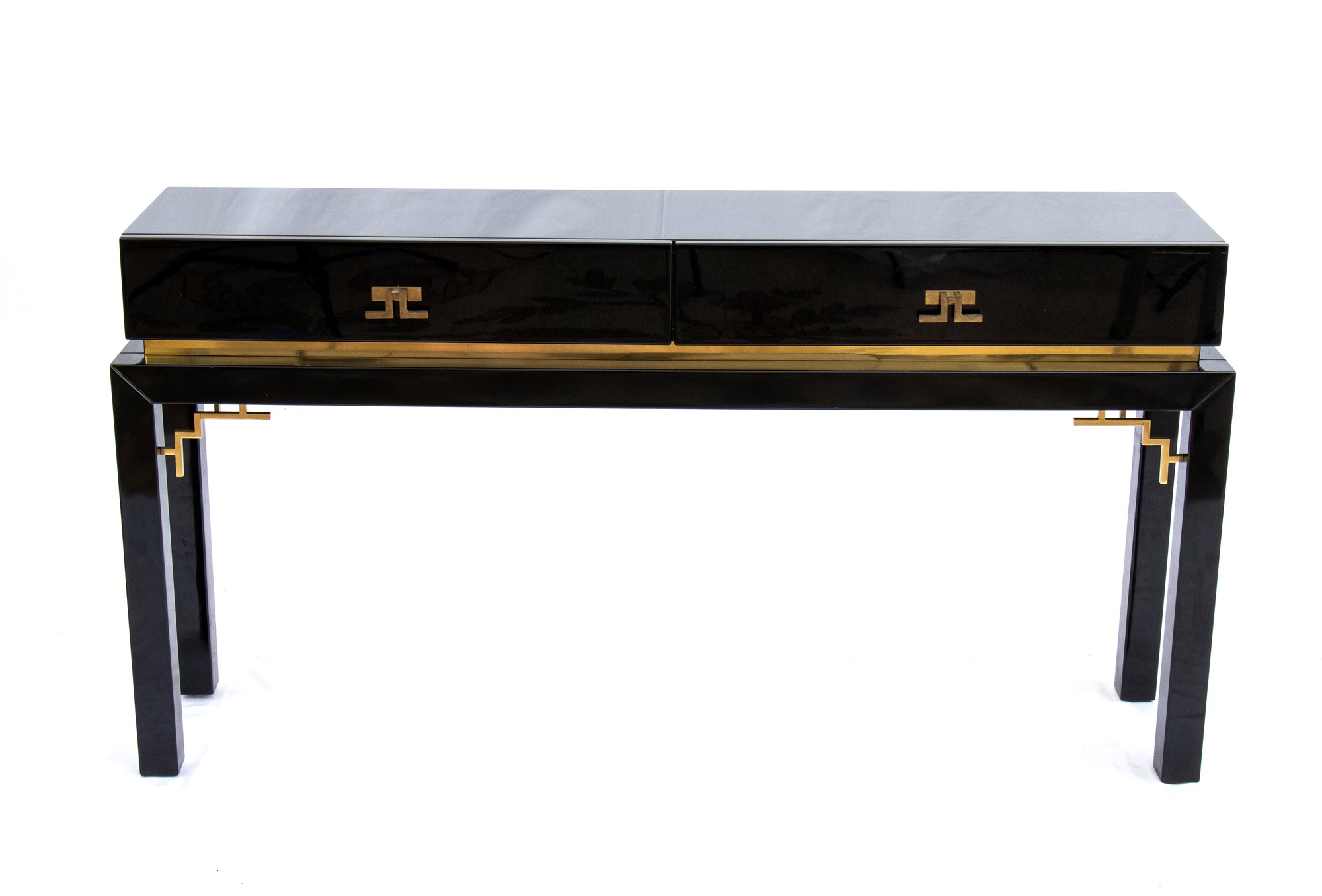 Consolle in legno laccato e ottone con due cassetti al fronte