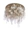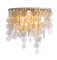 Lampadario a plafone, di grandi dimensioni con struttura tonda in alluminio con finitura e giri di catenelle e pendenti in piccoli dischi di vetro
