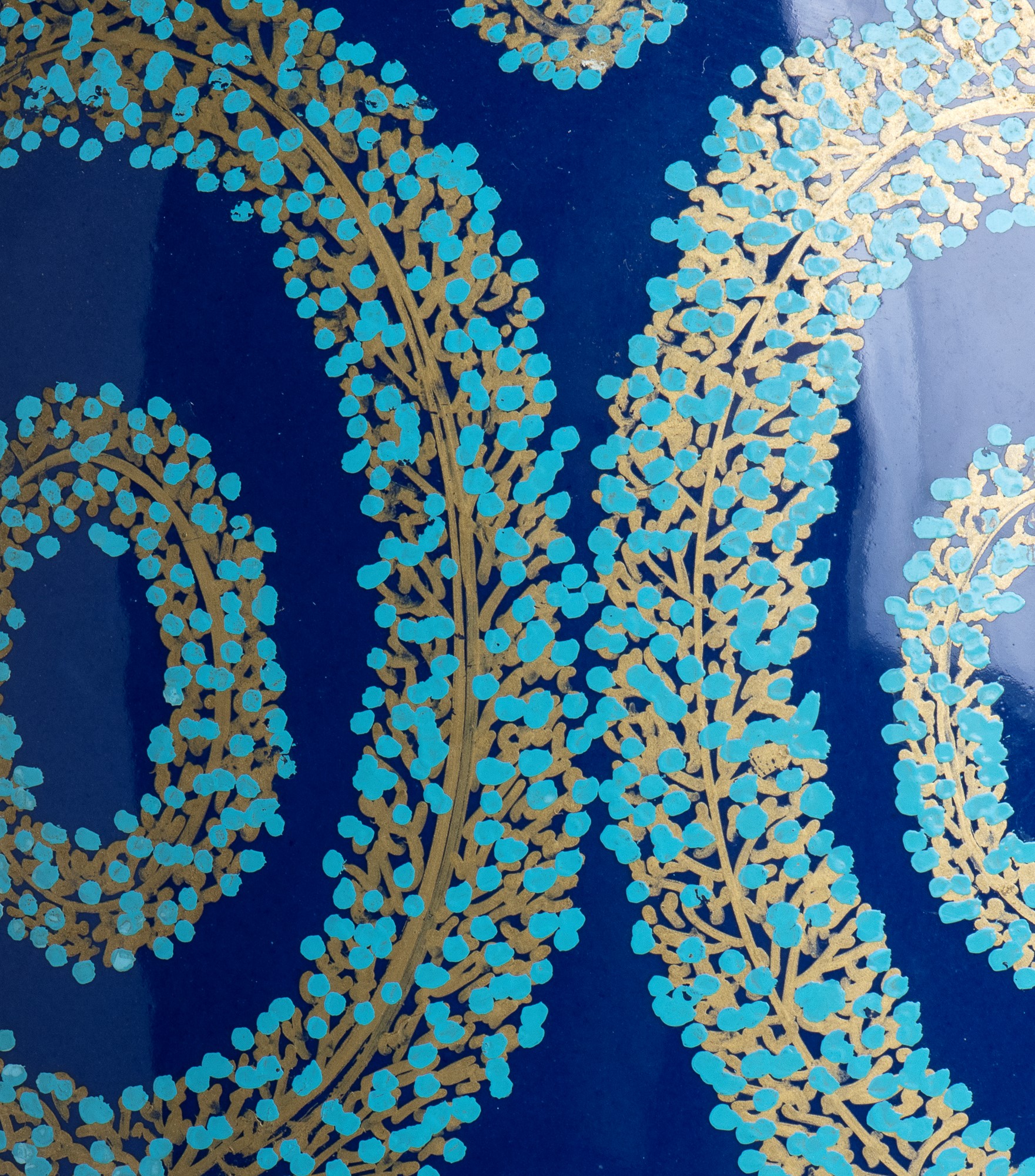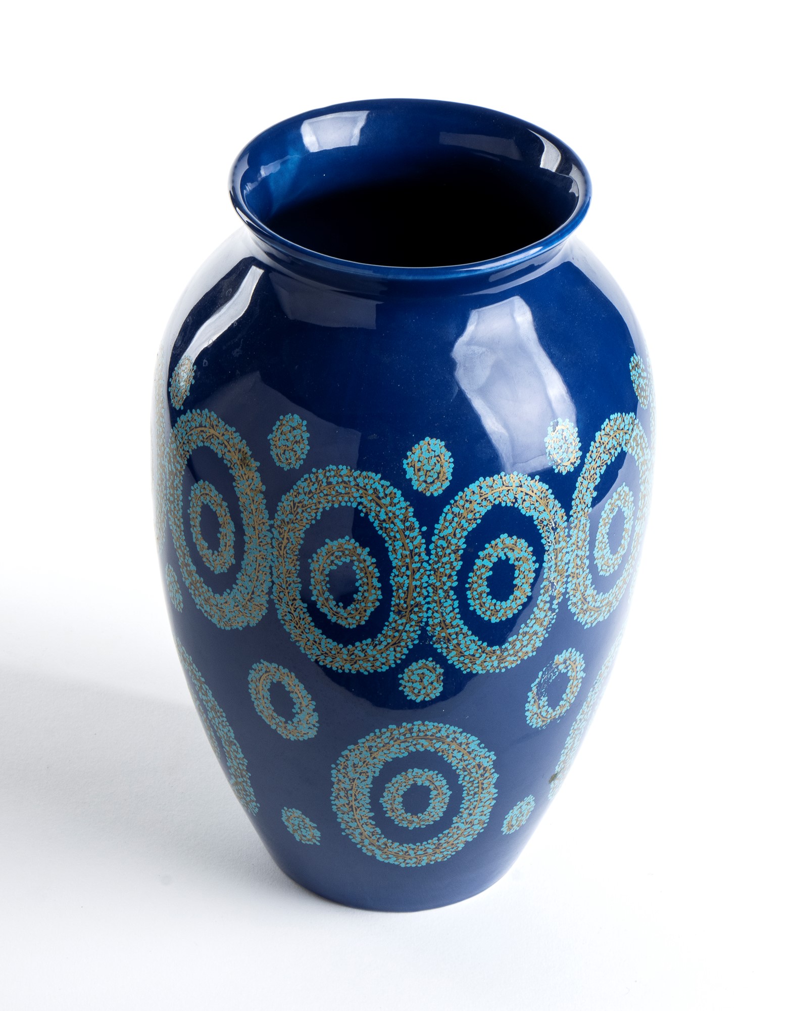 Lot 243 | Vaso in ceramica blu con particolari decori celesti e lumeggiature in oro