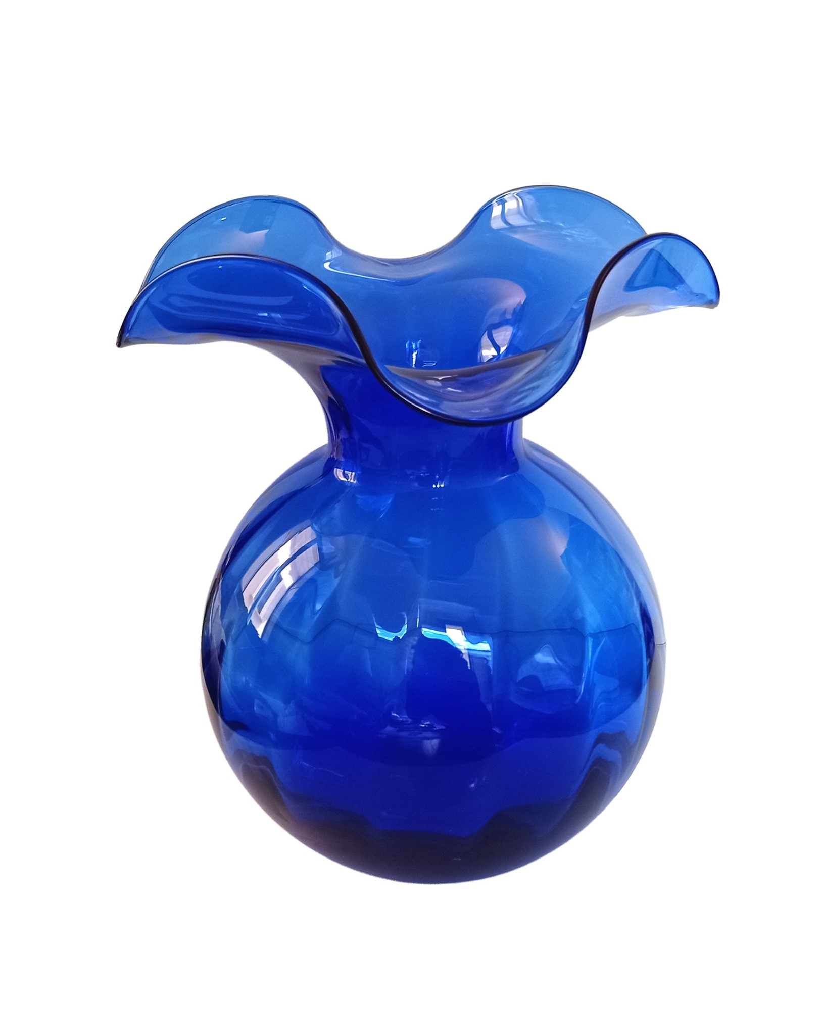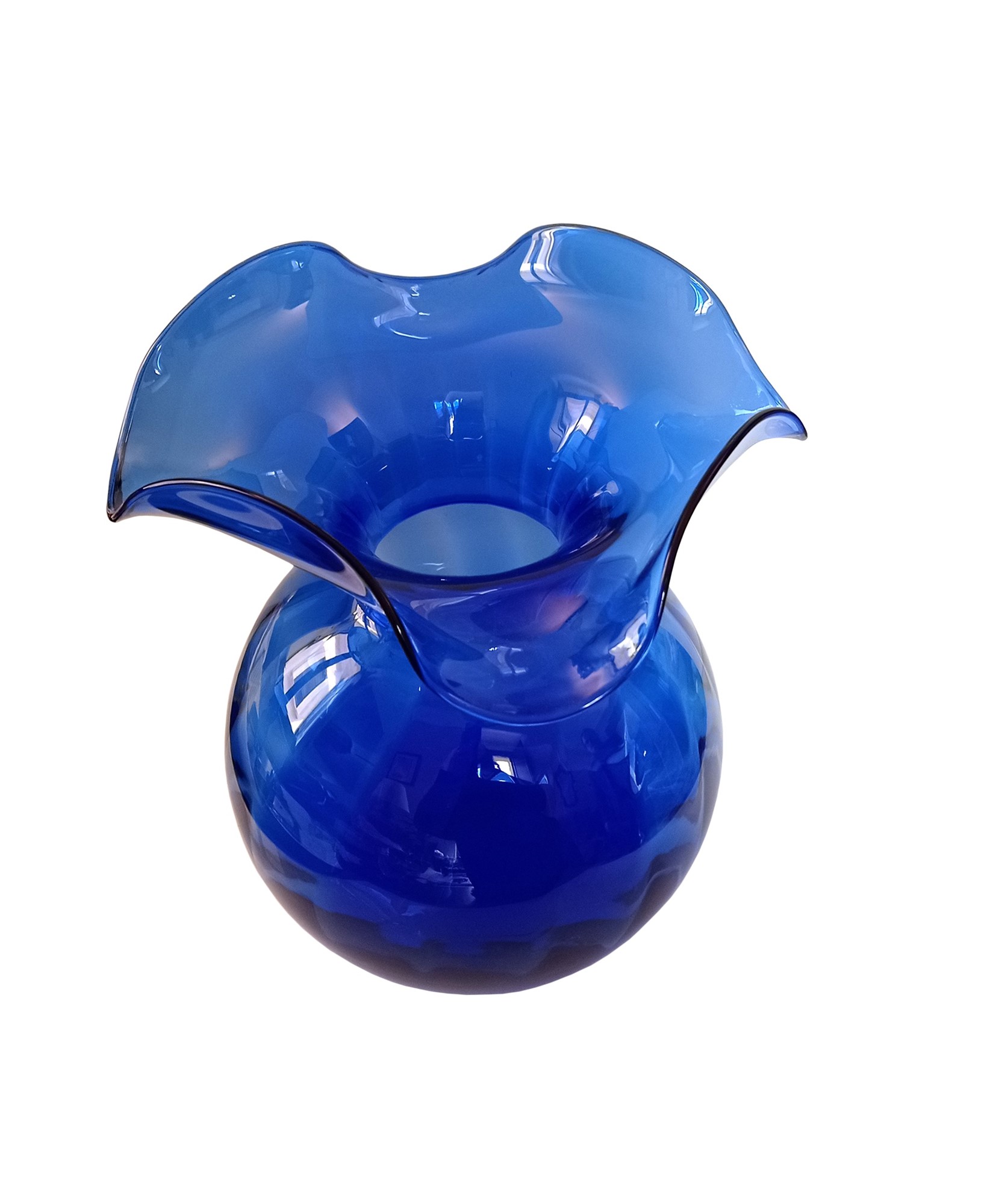 Vaso primula in vetro soffiato di Murano lavorato a costolature in blu di Prussia