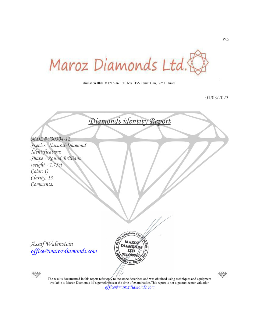 Lot 94 | DIAMANTE 1,75 CT G - I3 - C30304-12