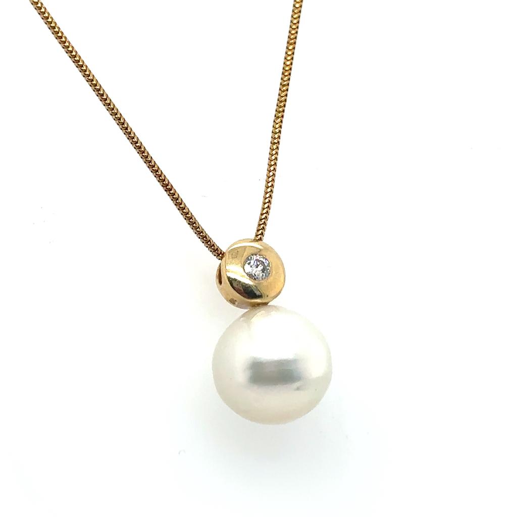 GIROCOLLO IN ORO GIALLO 14K 6.16 GR PERLE E DIAMANTI PER 0.10 CARATI TAGLIA 40CM - CERTIFICATO GEMMOLOGICO MAROZ DIAMONDS LTD MEMBRO ISRAEL DIAMOND EXCHANGE - AI30505