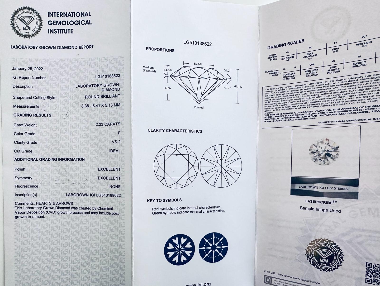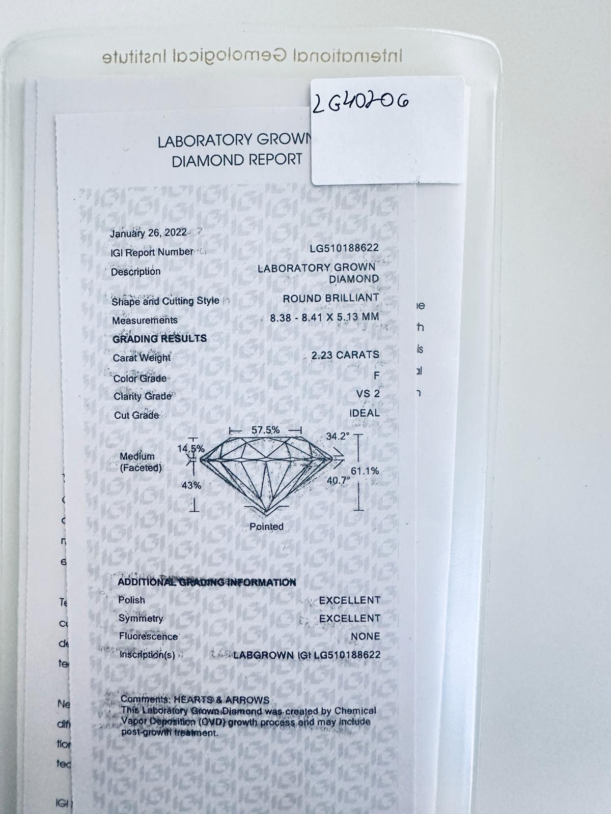 DIAMANTE 2,23 CARATI COLORE F - PUREZZA VS2 - TAGLIO BRILLANTE - LAB GROWN - CERTIFICATO IGI - LG40206