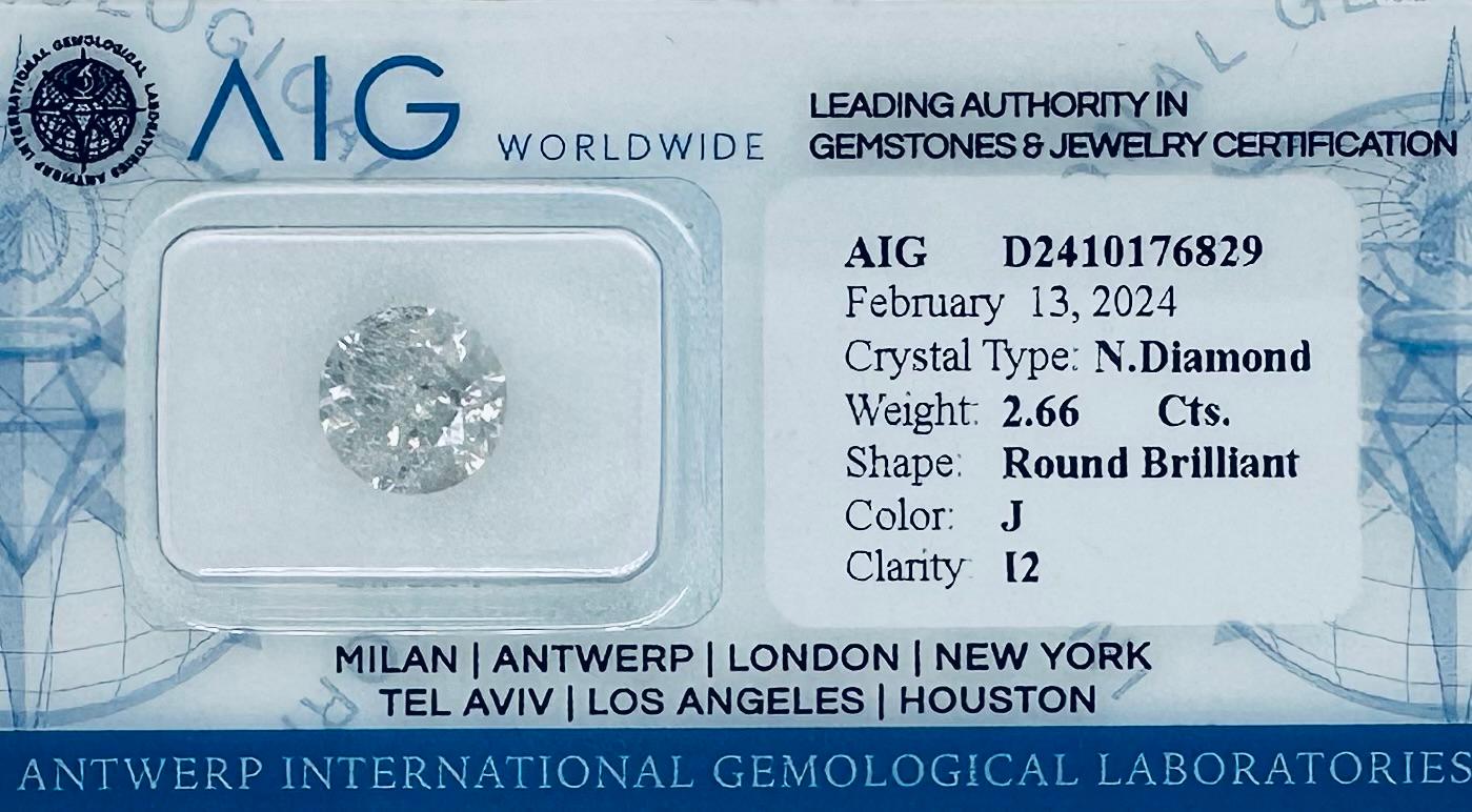 DIAMANTE 2,66 CT J - PUREZZA I2 - TAGLIO BRILLANTE - CERTIFICATO AIG - C40206-10