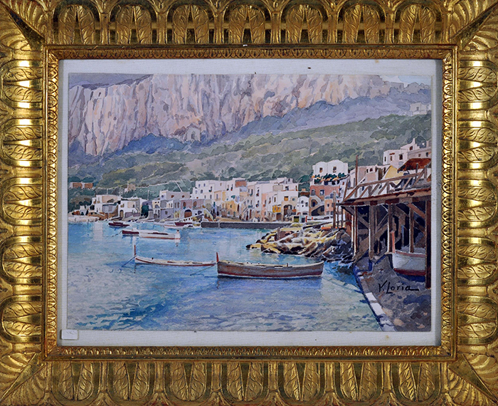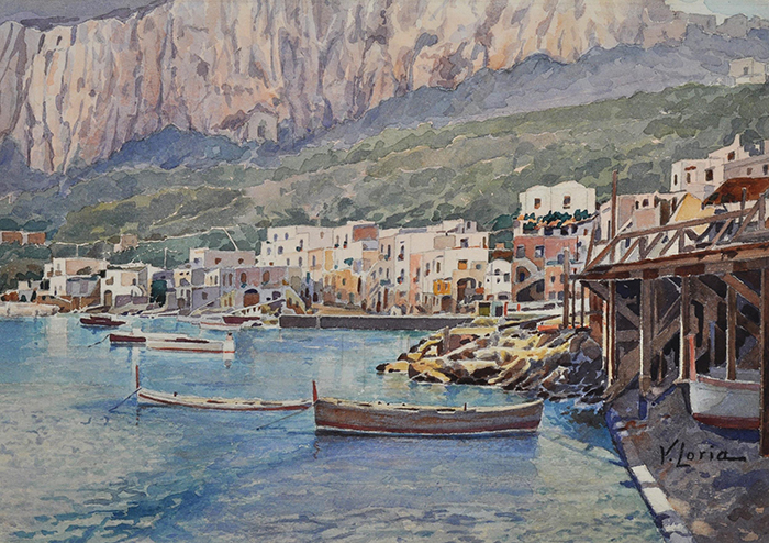 Loria Vincenzo (Salerno 1849 - La Spezia 1939) Marina di Capri acquerello su carta, cm 26x36 firmato in basso a destra: V. Loria