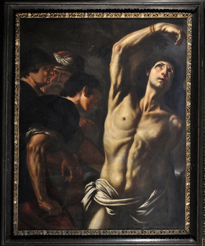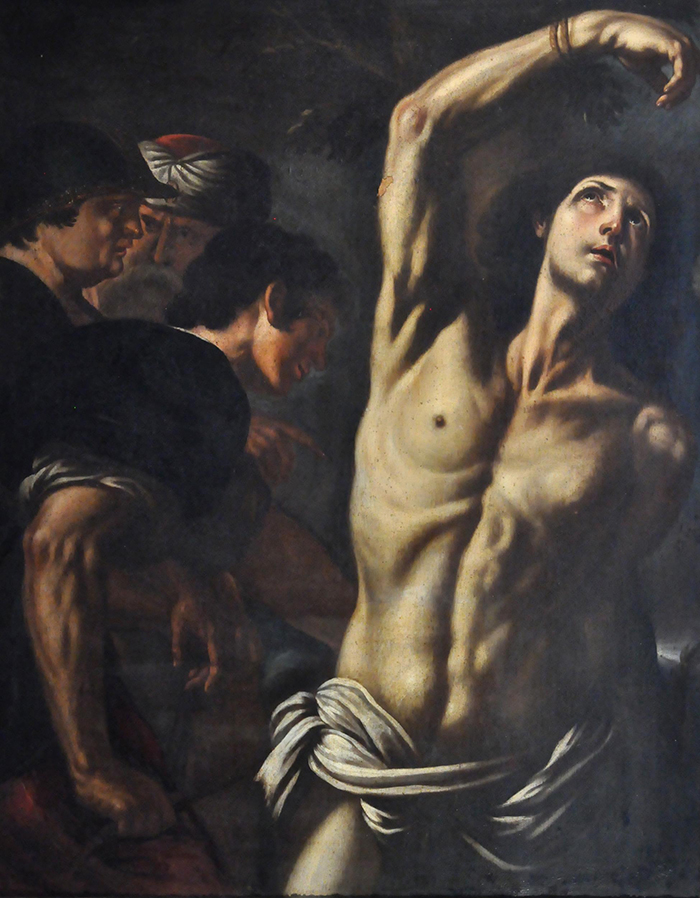 Ignoto del XVII secolo Martirio di San Sebastiano olio su tela, cm 127x101