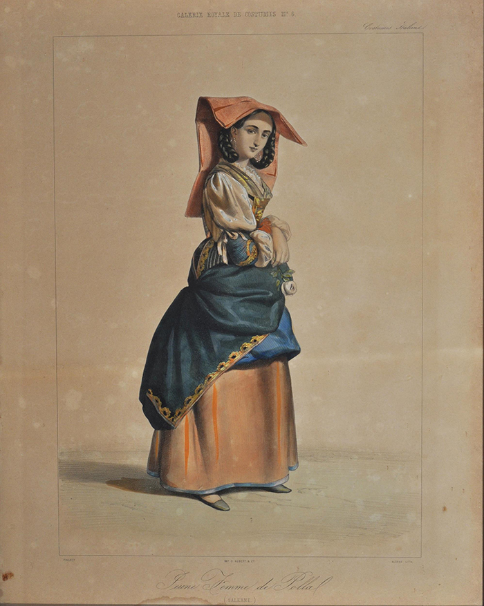 Anonimo XIX secolo a) Giovane donna di Polla b) Giovane donna di Auletta cromolitografie, cm 41x32