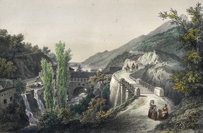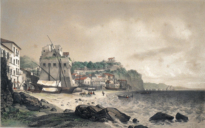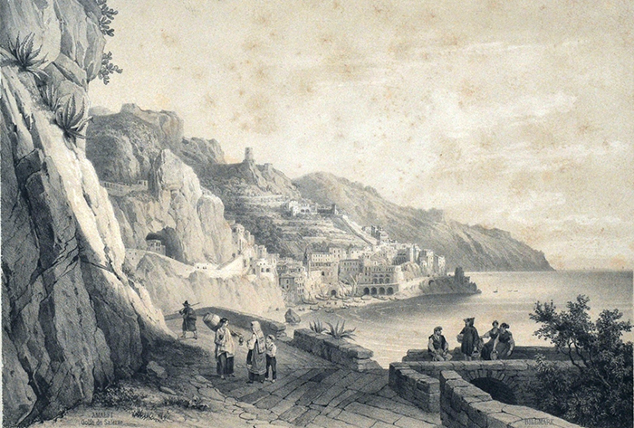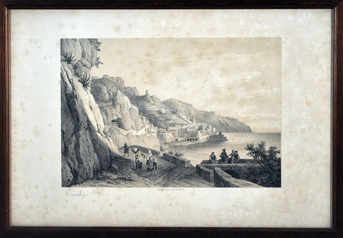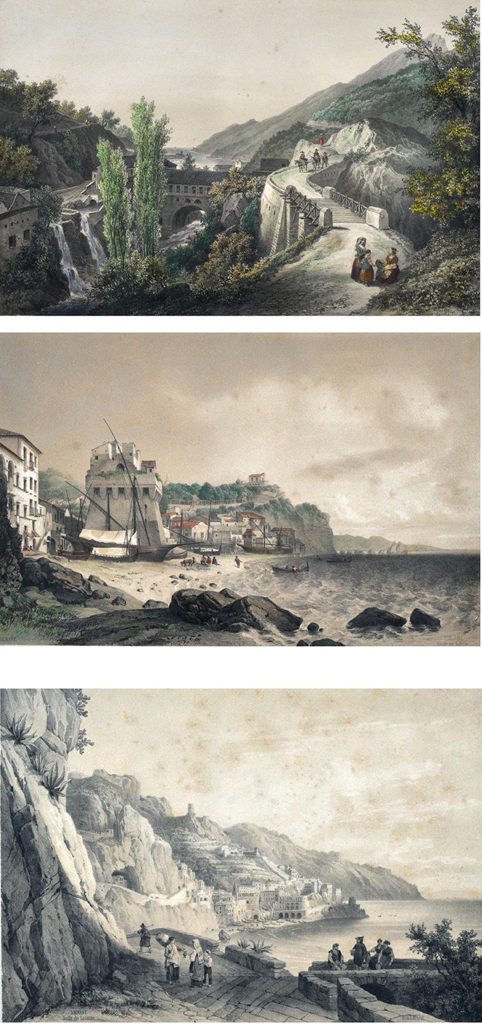 Autori vari XIX secolo a) Stradina di Vietri litografia, cm 18,5x29 b) Marina di Vietri litografia, cm 19x29 c)Amalfi litografia, cm 19x30