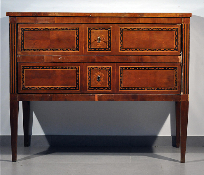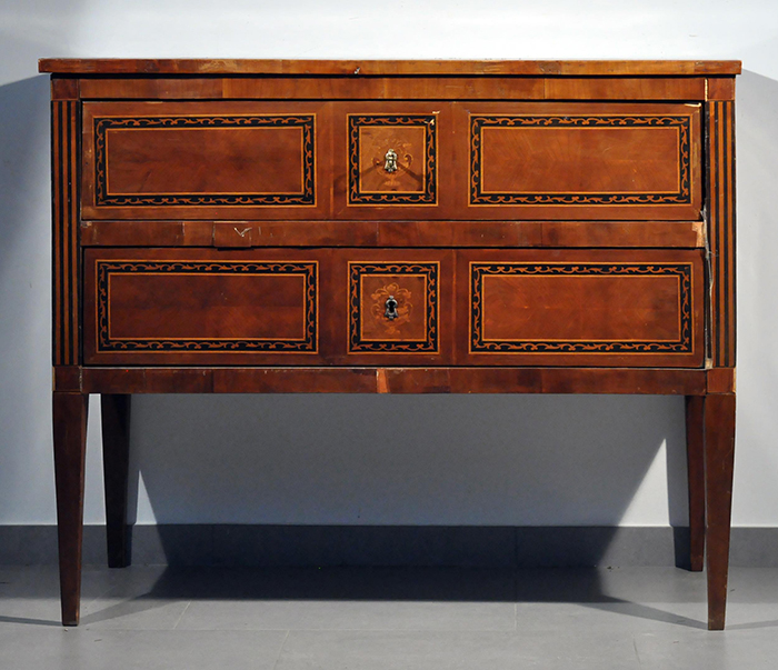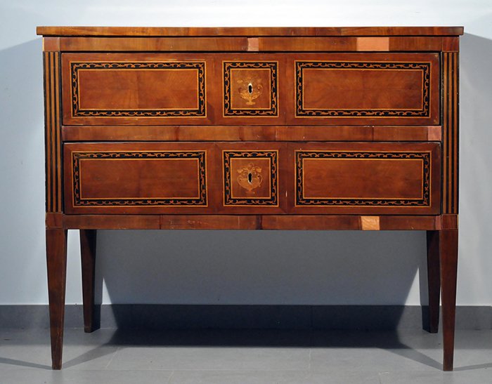 Coppia di cassettoni SORRENTO di inizio '800,con due cassetti, cm 123x61, h cm 100